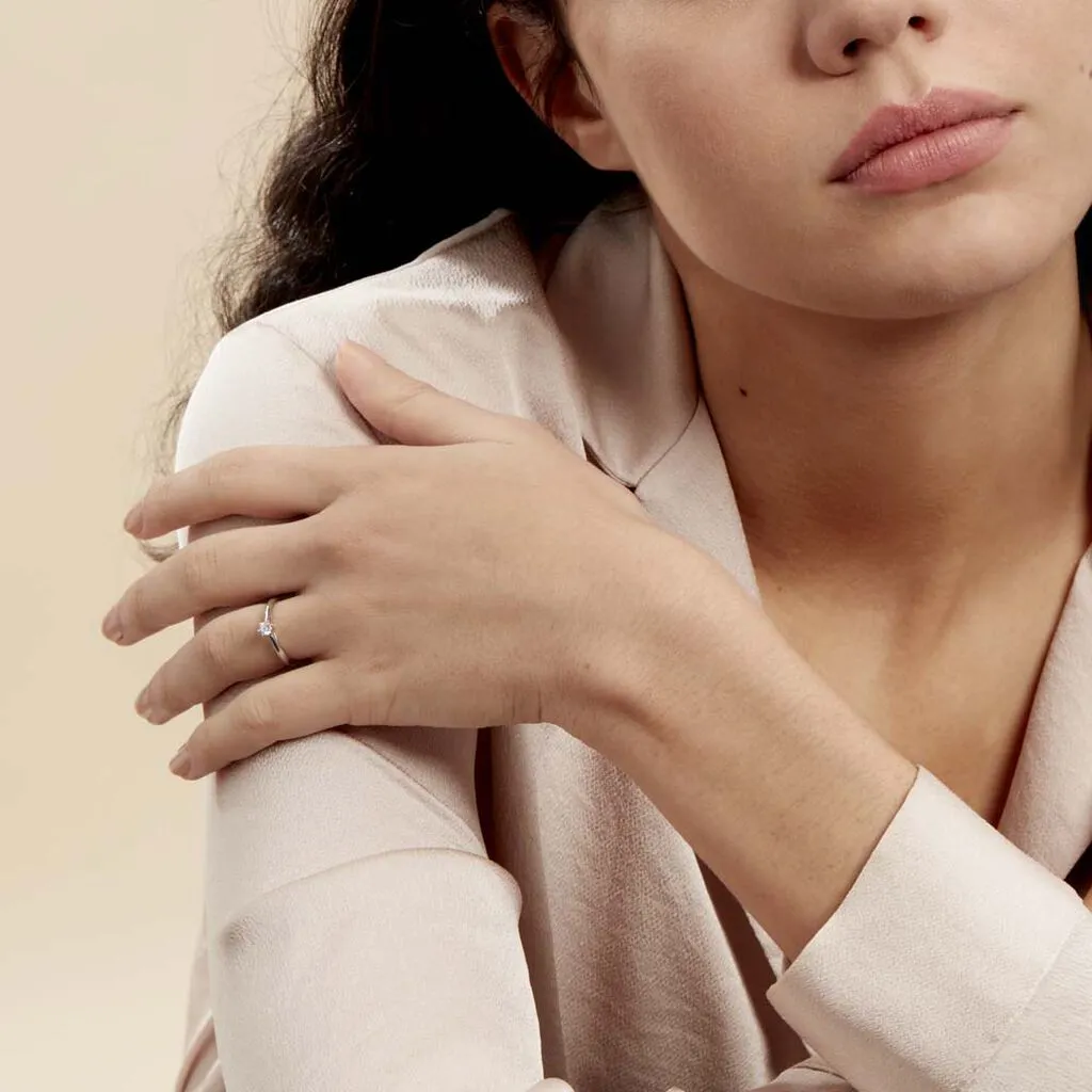 Solitaire Or Blanc 375/1000 Diamant 0.15cts Serti 6 Griffes Corps De Pince