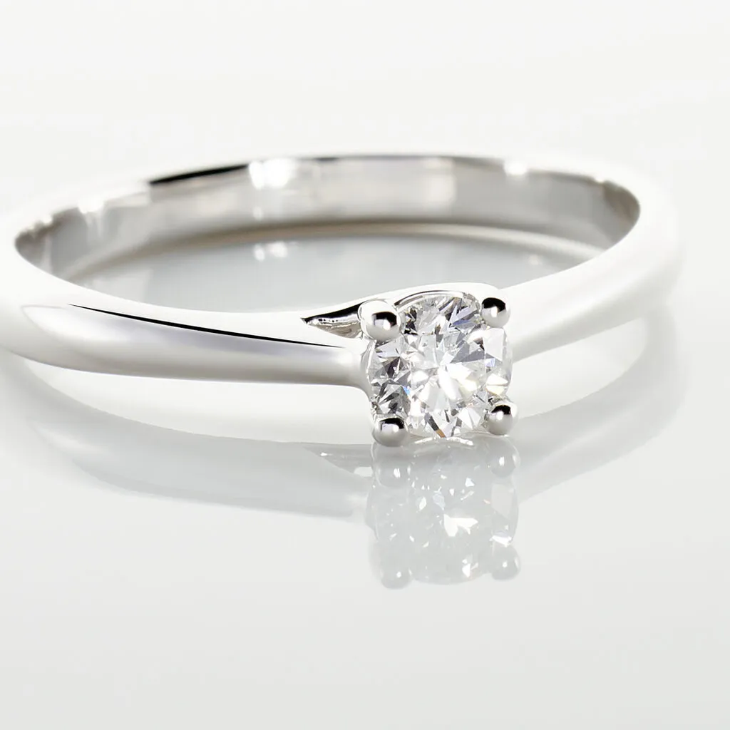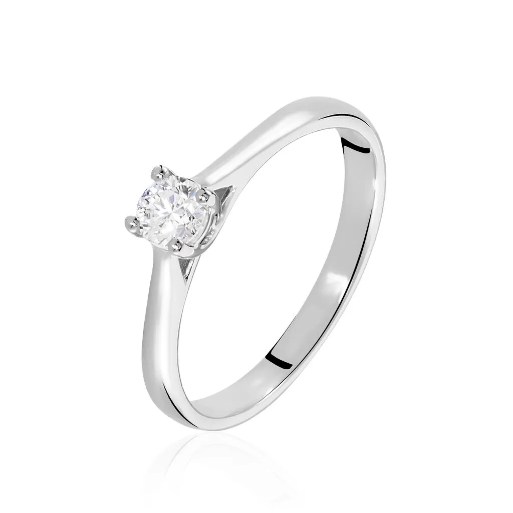 Solitaire Or Blanc 750/1000 Diamant 0.22cts Serti 4 Griffes