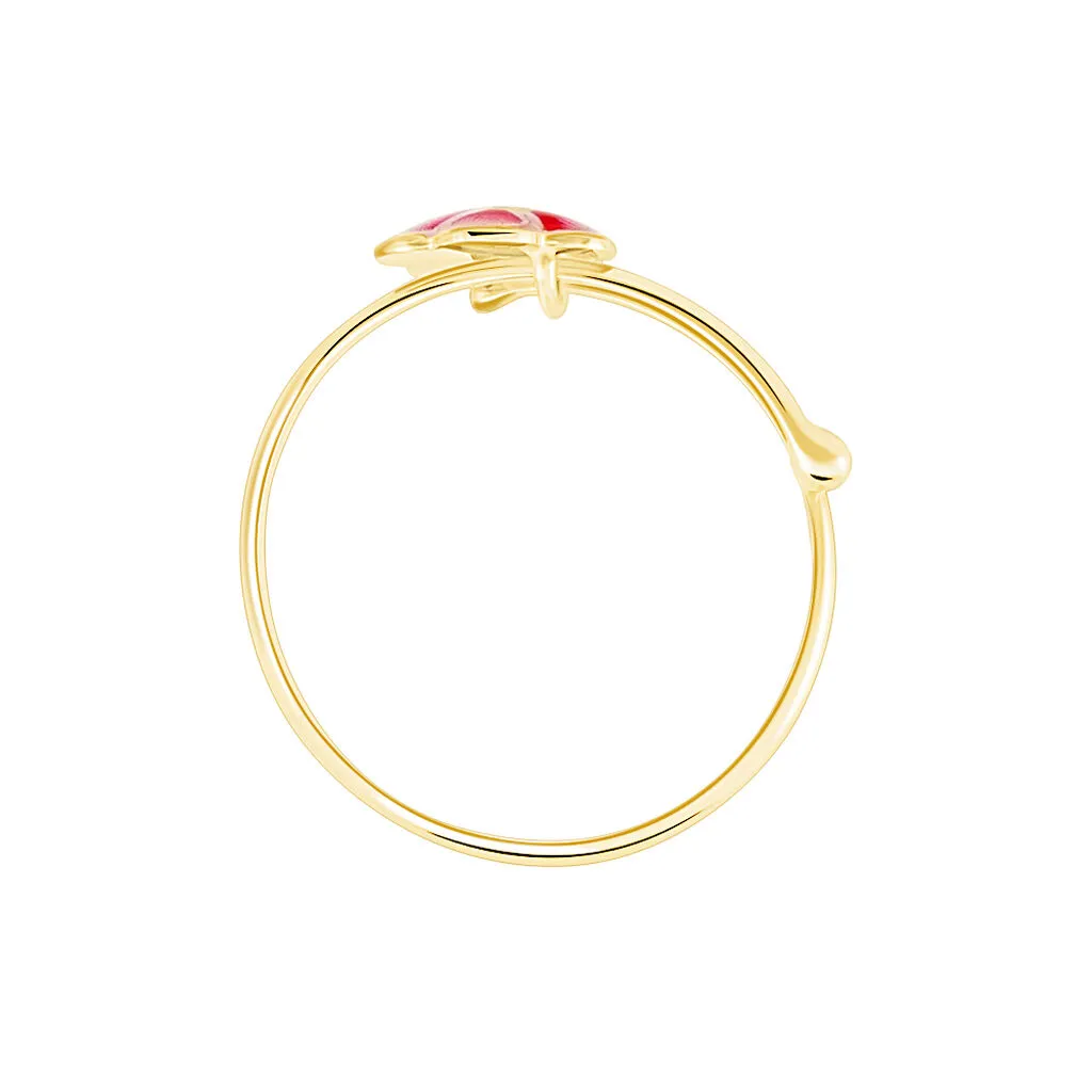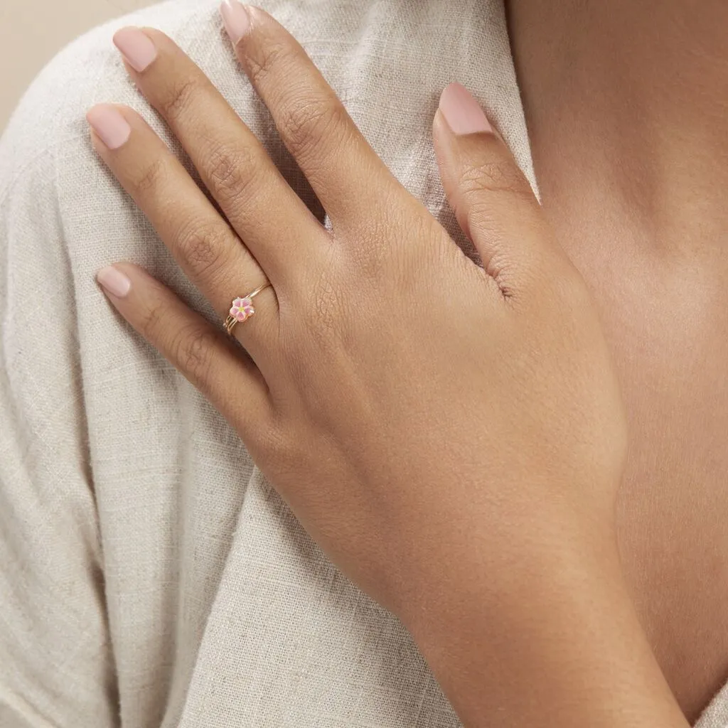 Bague Or Jaune 375/1000 Fleurs Smalto Rose Ajustable