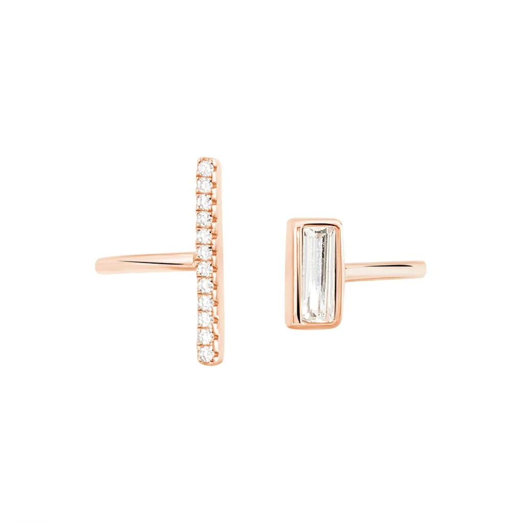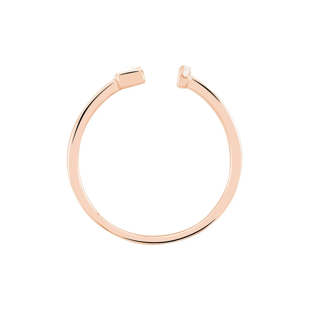 Bague Argent Rose 925/1000 Ouverte Motifs Rectangulaire Et Barrette Oxydes De Zirconium