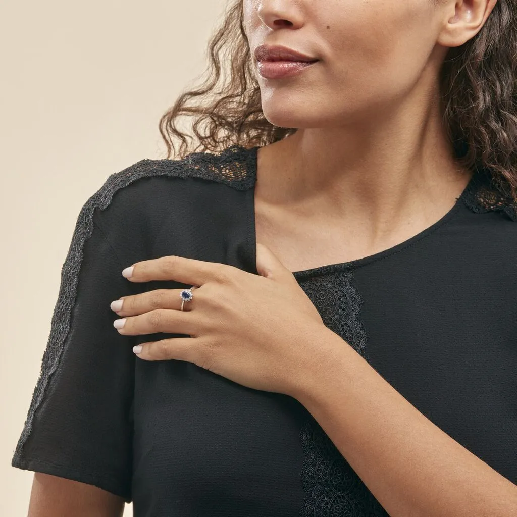 Bague Or Blanc 375/1000 Saphir Simple Entourage Diamants Blancs Pm Vladimir