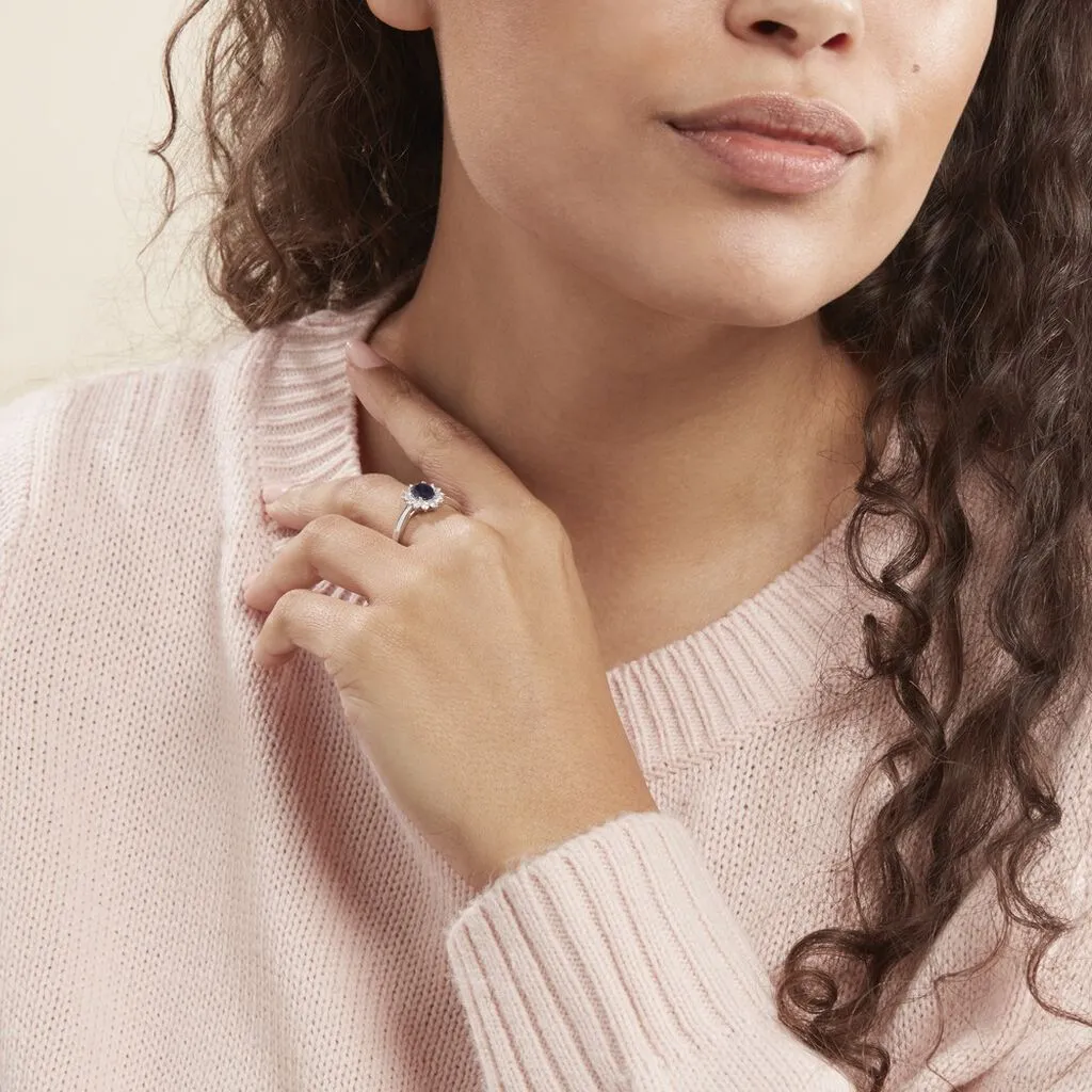 Bague Or Blanc 375/1000 Saphir Simple Entourage Diamants Blancs Mm Vladimir