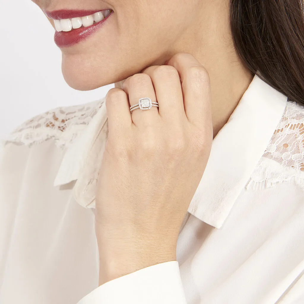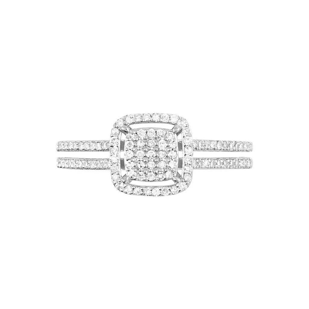 Bague Or Blanc 375/1000 Pavage Diamants Forme Carrée Corps De Bague Double Pave Diamants