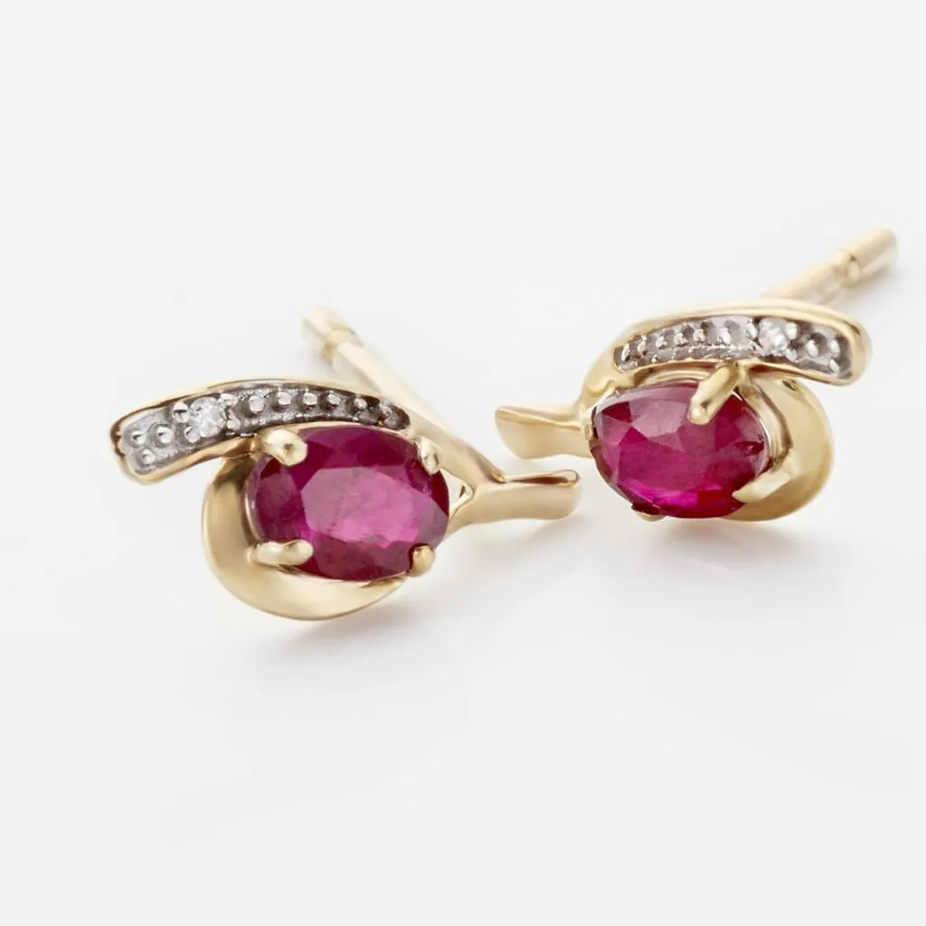 Bijoux D’oreilles Emotion Or Jaune Rubis Diamant