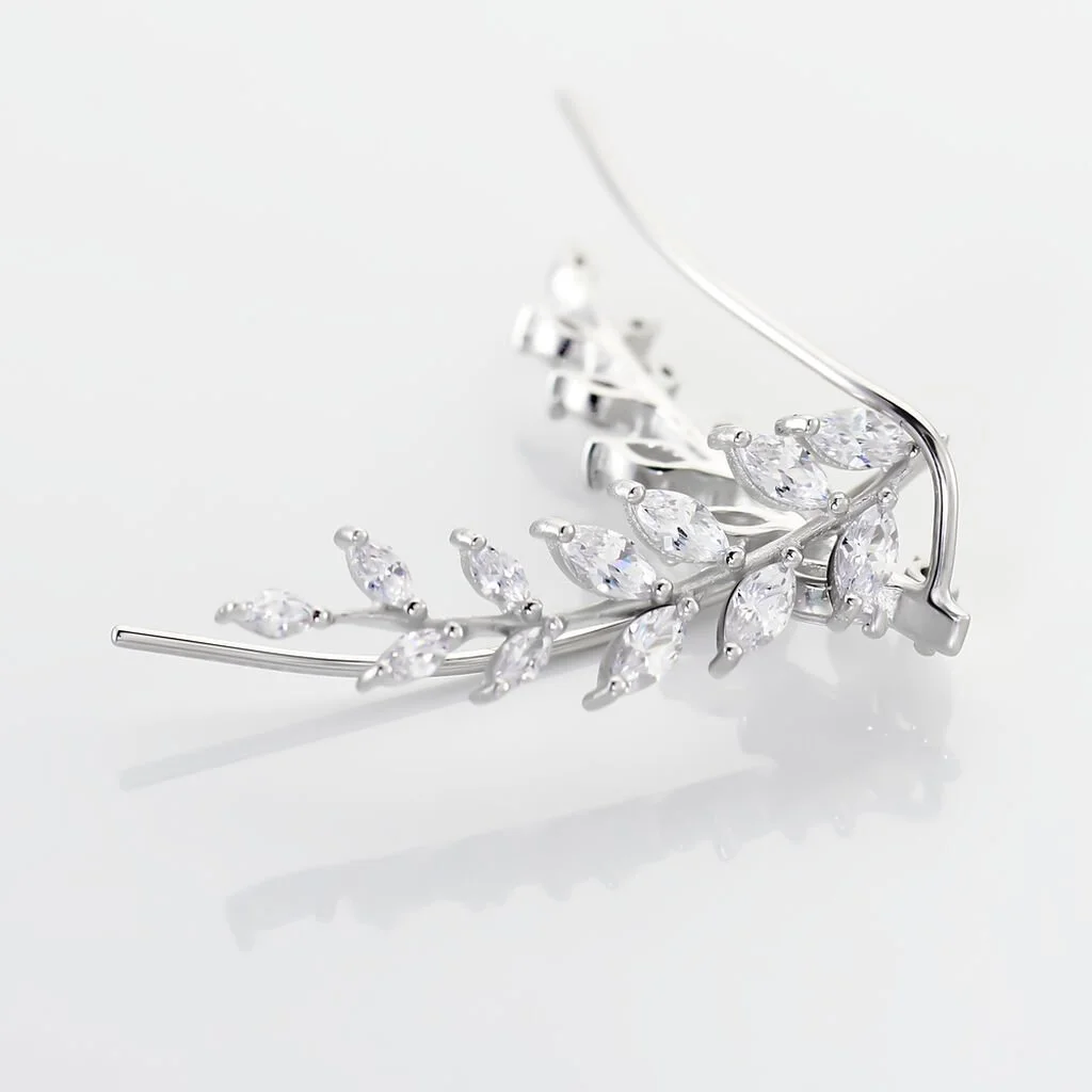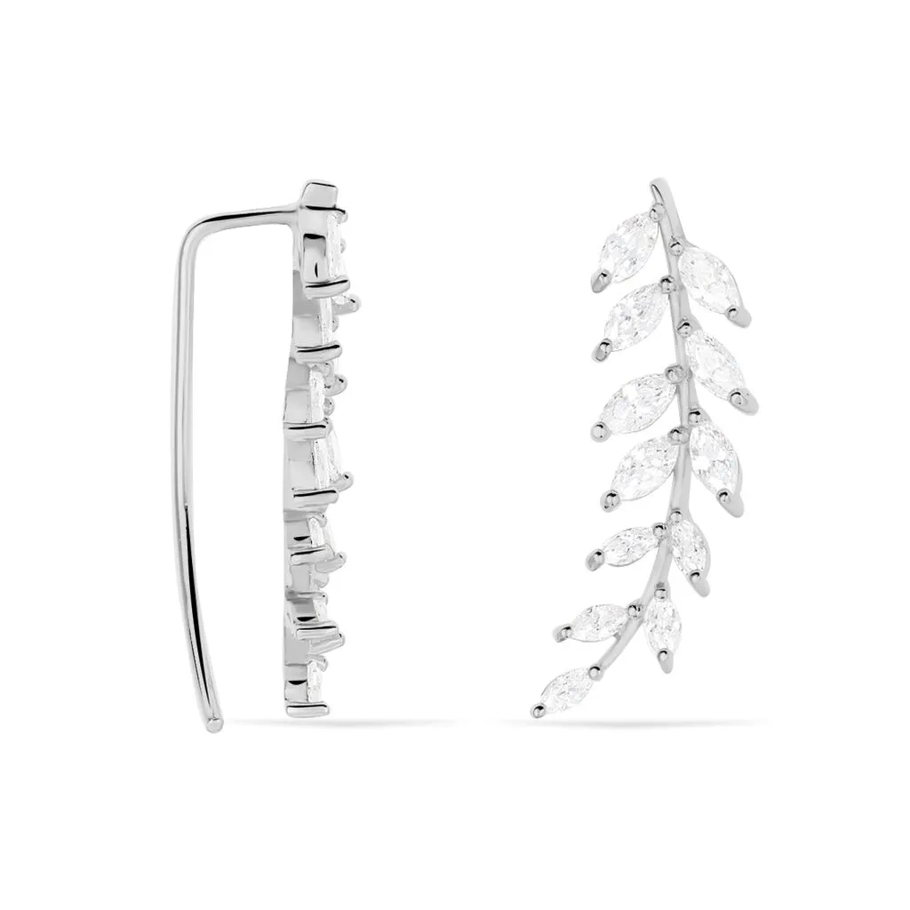 Bijoux D’oreilles Argent Blanc 925/1000 Motifs Feuilles Oxydes De Zirconium