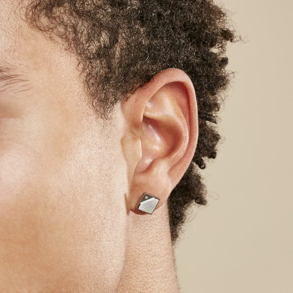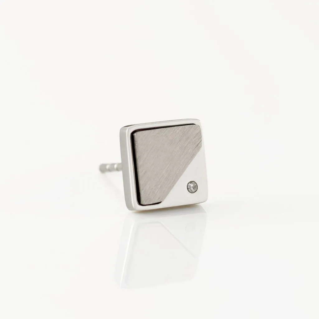 Boucle D’oreille Puce Unitaire Acier Blanc Carré Diamant Blanc 0.005 Cts