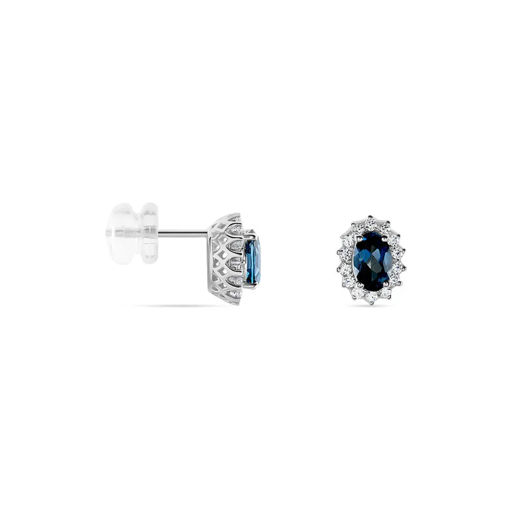 Boucles D’oreilles Or Blanc Quintilla Topazes London Blue Et Oxydes