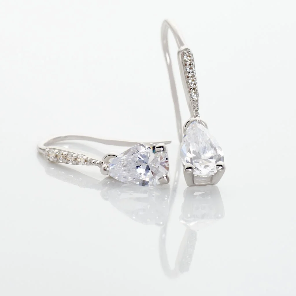 Boucles D’oreilles Or Blanc 375/1000 Montreal Oxyde De Zirconium Poire Accompagnée Oxydes De Zirconium