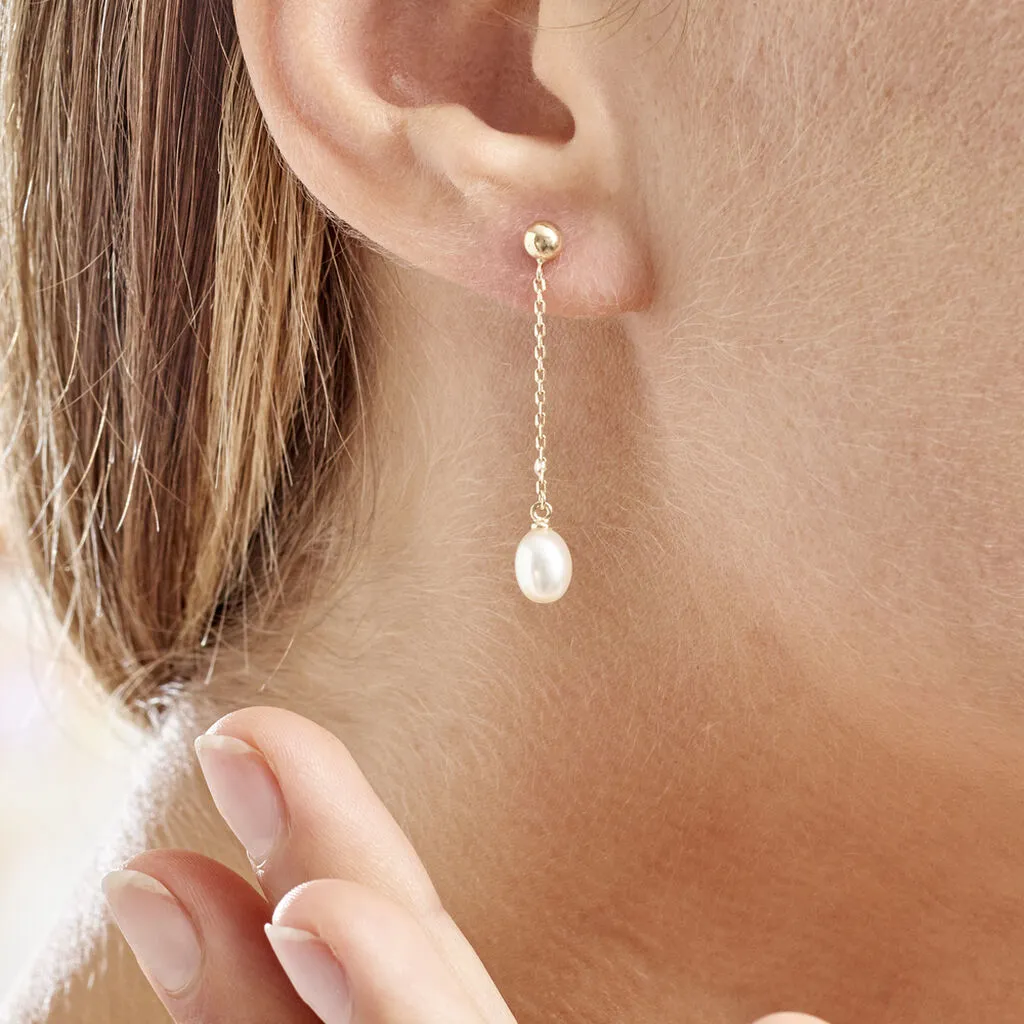 Boucles D’oreilles Or Jaune 375/1000 Pendantes Perles De Culture 7/5.4mm