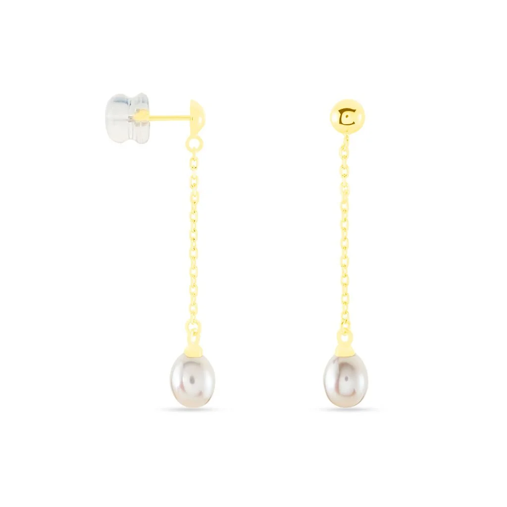 Boucles D’oreilles Pendantes Adriette Or Jaune Perle De Culture