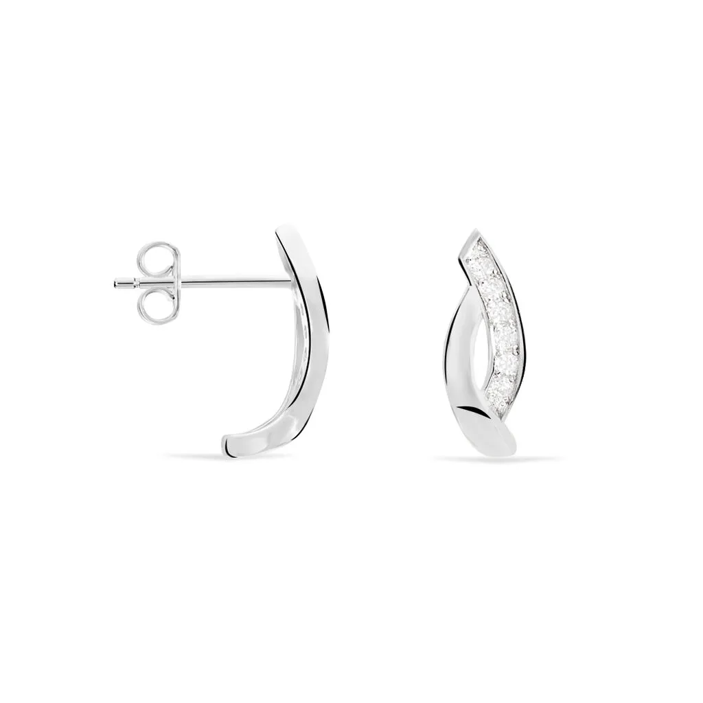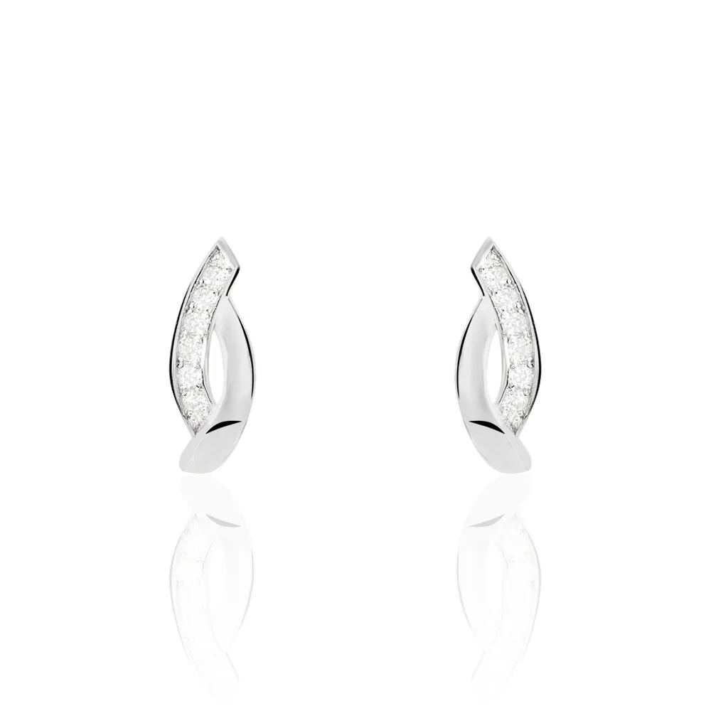 Boucles D’oreilles Argent Blanc 925/1000 Amandes Ajourees Semi Pavee Oxydes De Zirconium