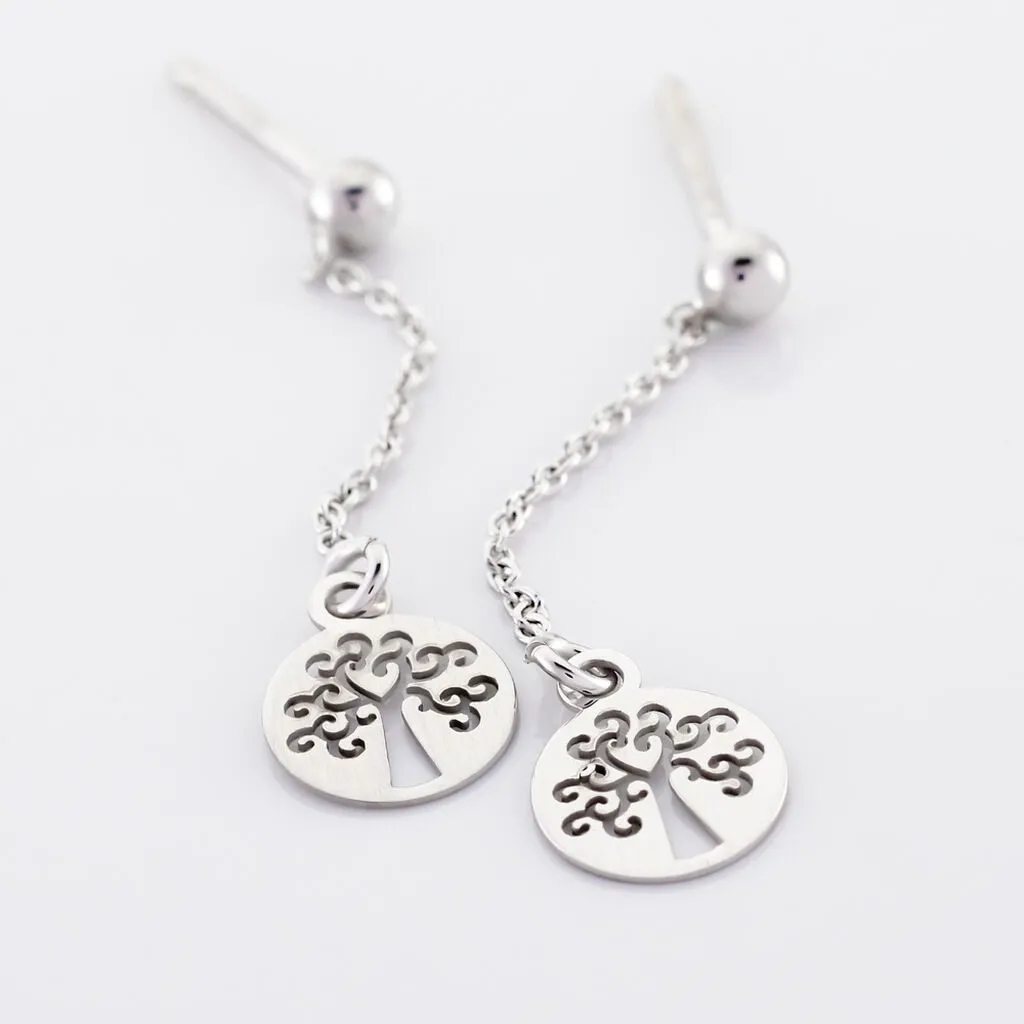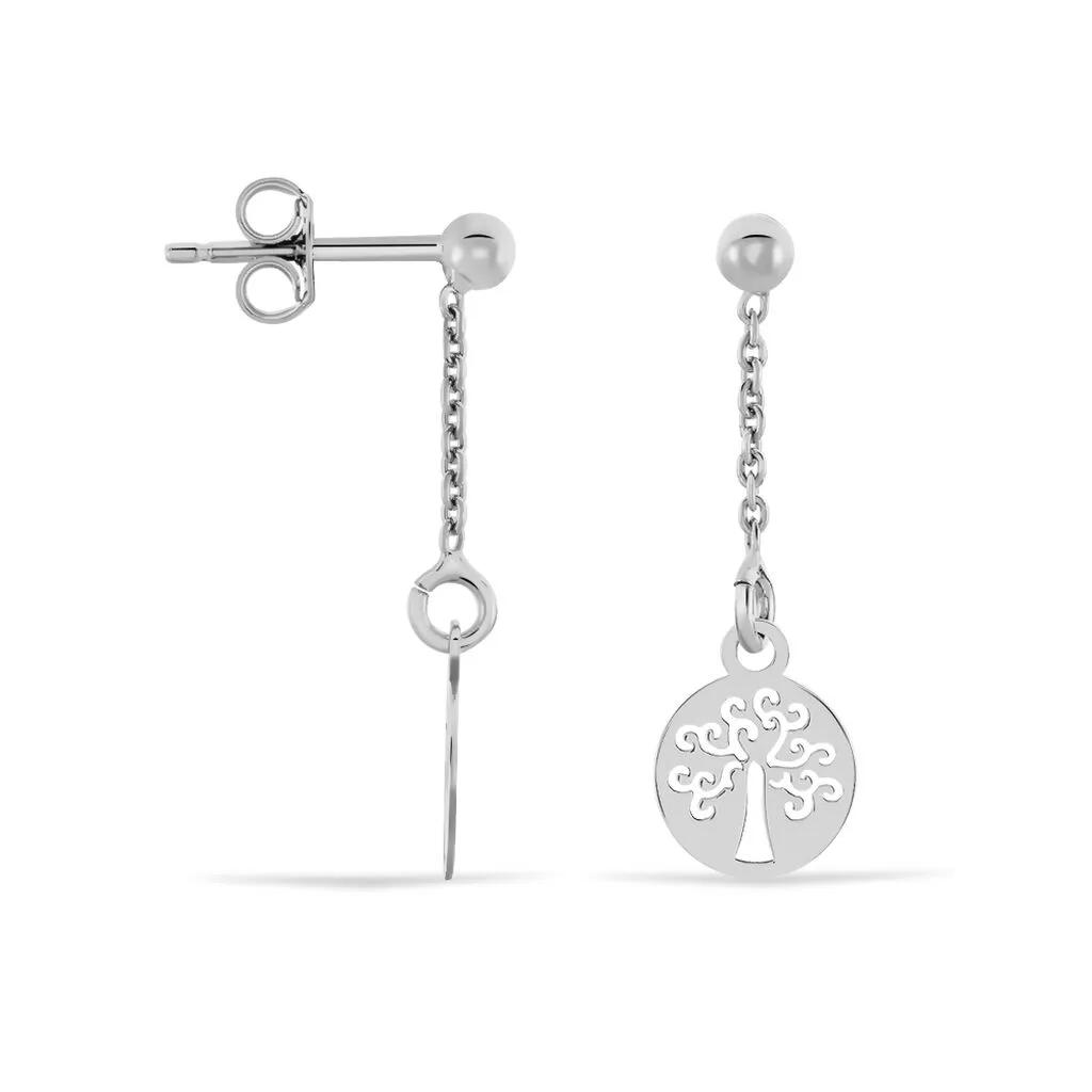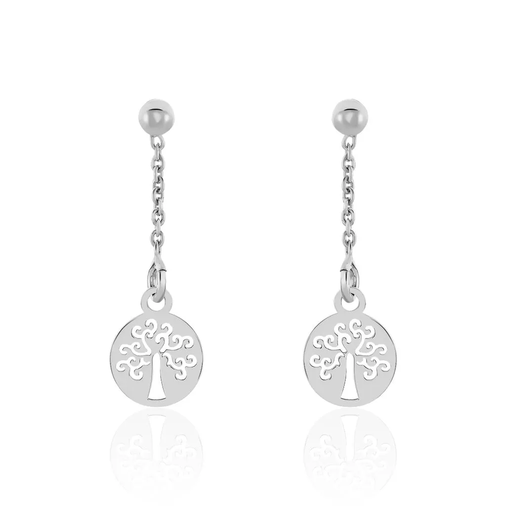 Boucles D’oreilles Pendantes Argent Blanc 925/1000 Pastilles Motifs Arbres De Vie Ajoures