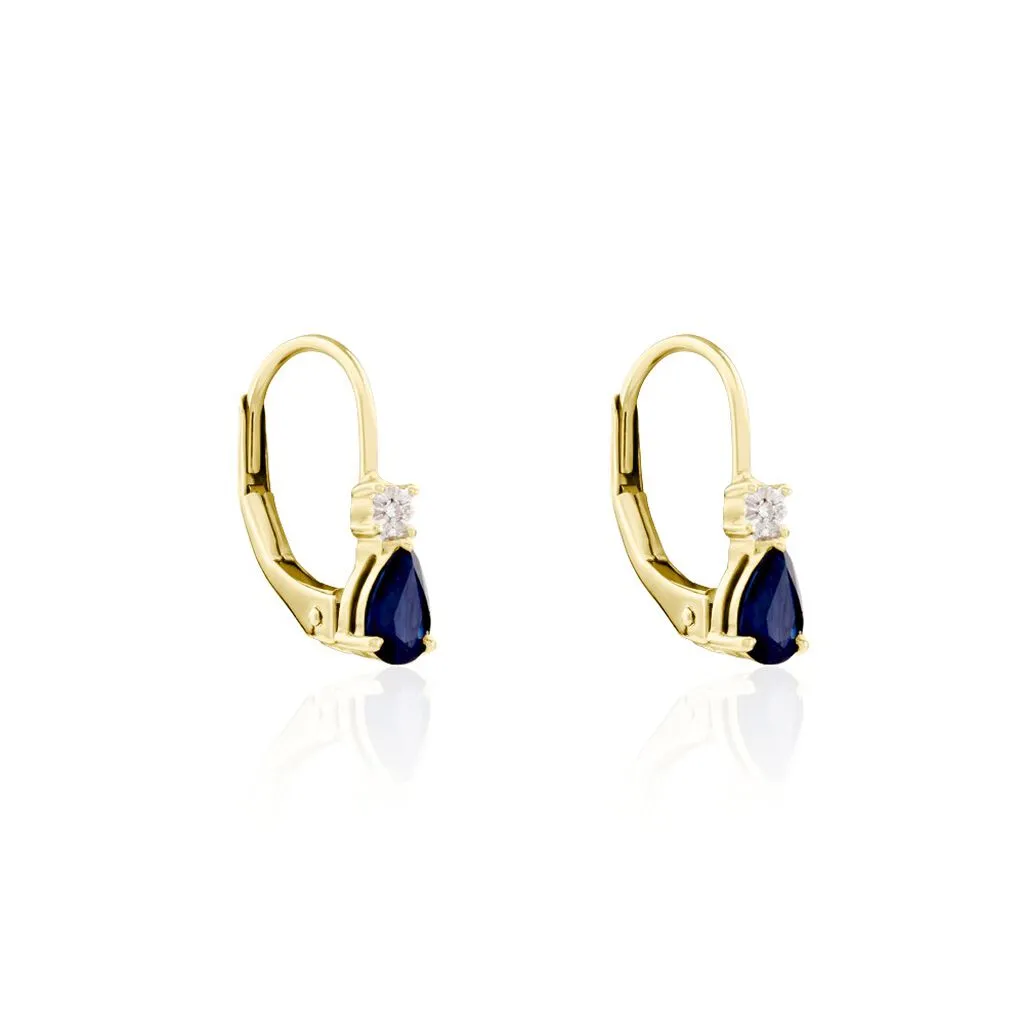 Boucles D’oreilles Pendantes Accompagnées Diamants Or Jaune 375/1000 Saphir Poire Serti Griffes 0.5cts