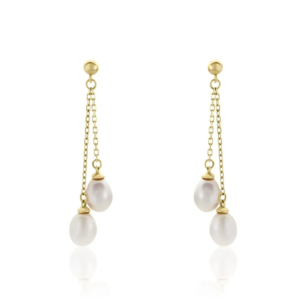 Boucles D’oreilles Pendantes Carrine 2 Fils Or Jaune Perle De Culture