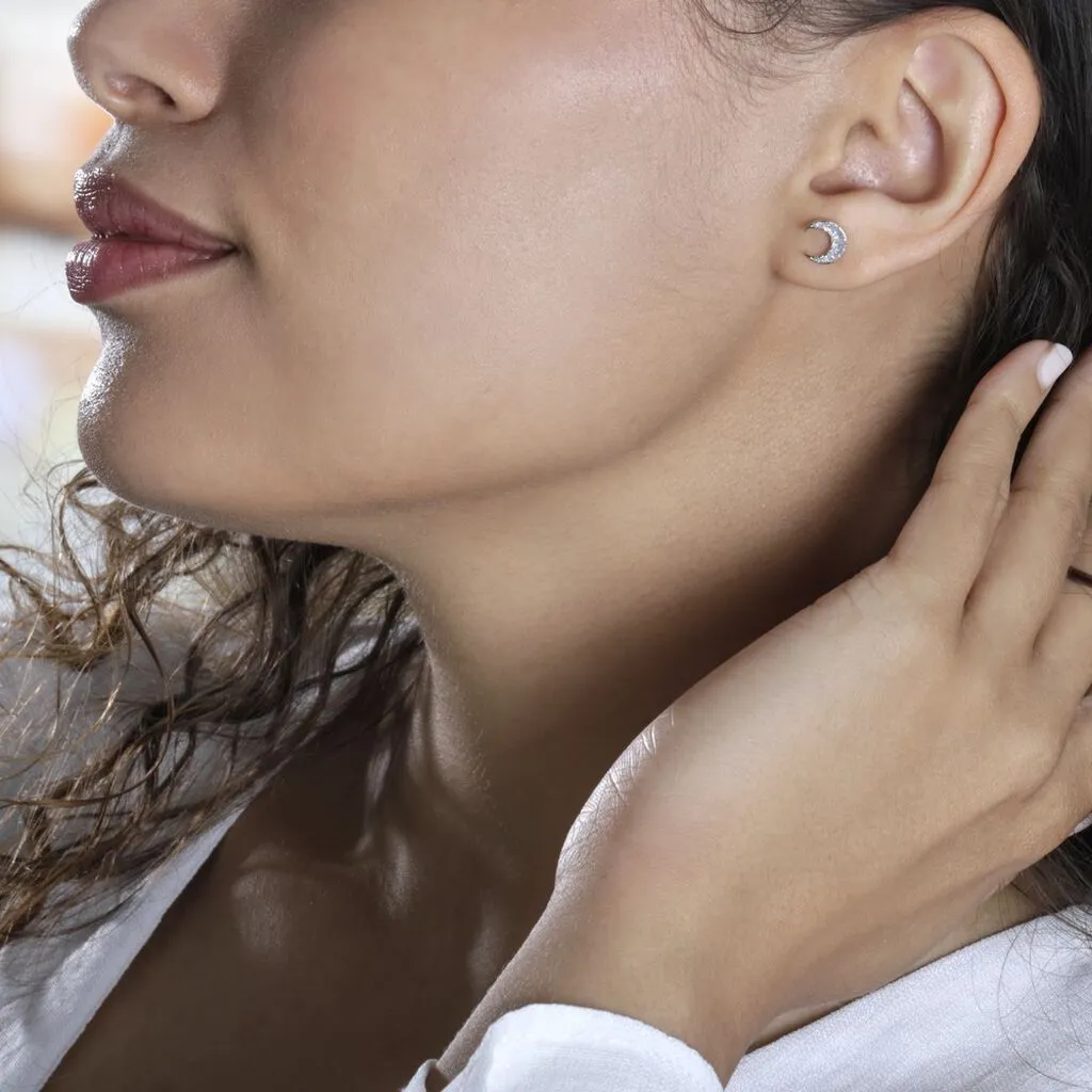 Boucles D’oreilles Or Jaune 375/1000 Motif Corne Glitter Silver