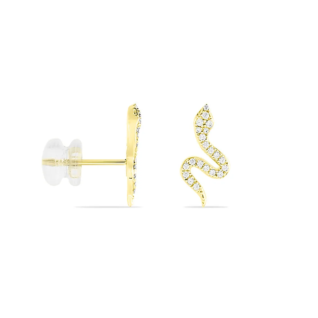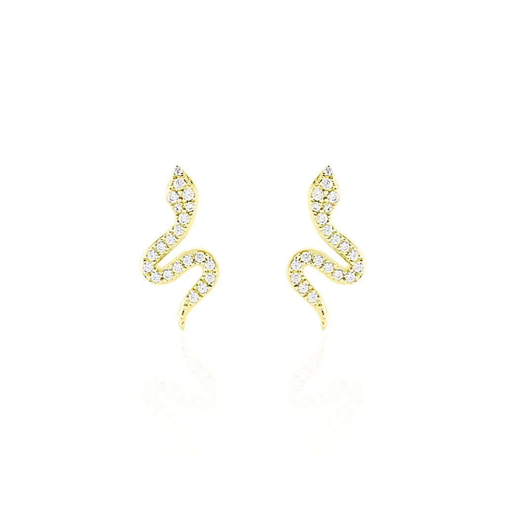 Boucles D’oreilles Or Jaune 375/1000 Formes Serpents Oxydes De Zirconium