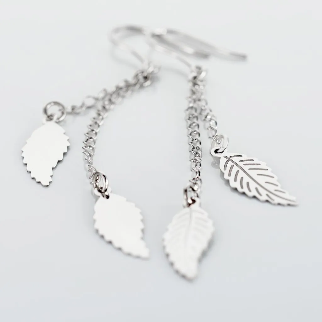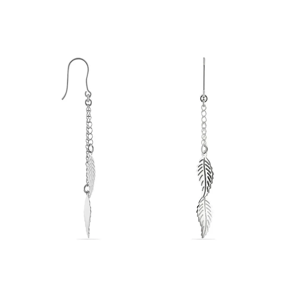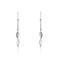 Boucles D’oreilles Pendantes Argent Blanc 925/1000 Feuilles Mailles Forcat