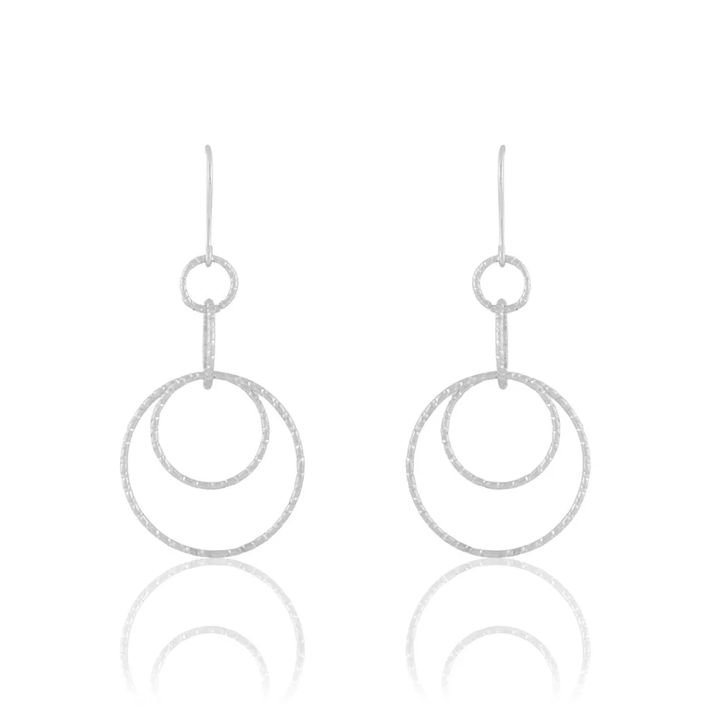 Boucles D’oreilles Pendantes Argent Blanc 925/1000 Cercles Ajoures Multiples