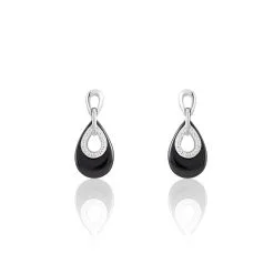 Boucles D’oreilles Argent Blanc 925/1000 Gouttes Ceramiques Noires Et Oxydes De Zirconium