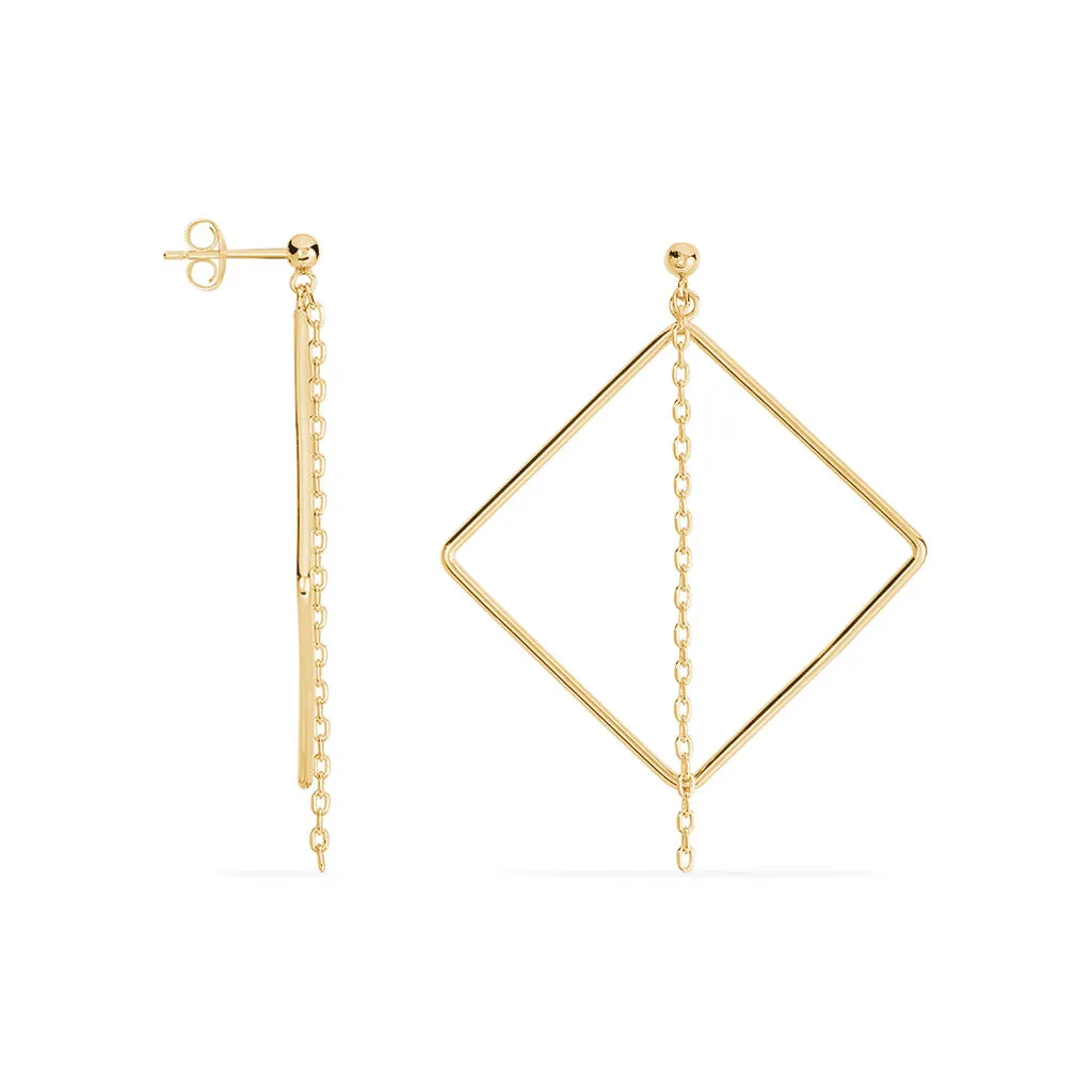 Boucles D’oreilles Pendantes Plaqué Or Jaune Carres Ajoures Et Chaines