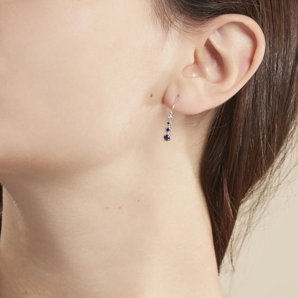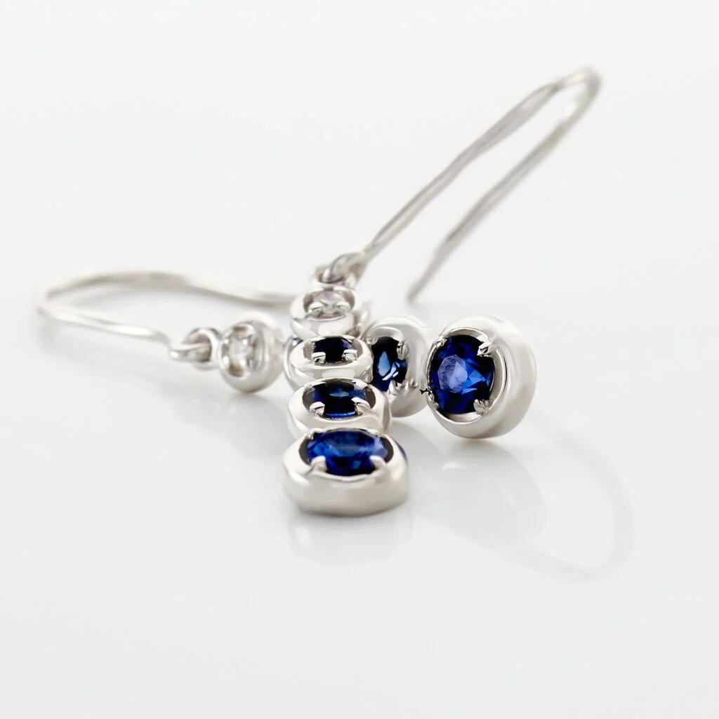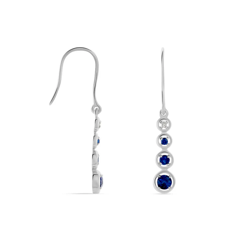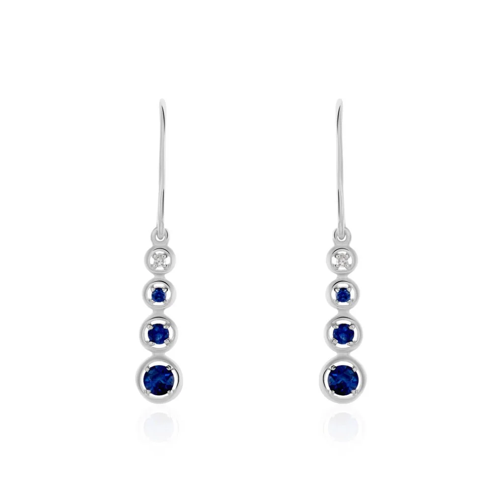Boucles D’oreilles Crochet Or Blanc 375/1000 »josephine » Pendante Saphirs Bleus Et Diamants Blancs