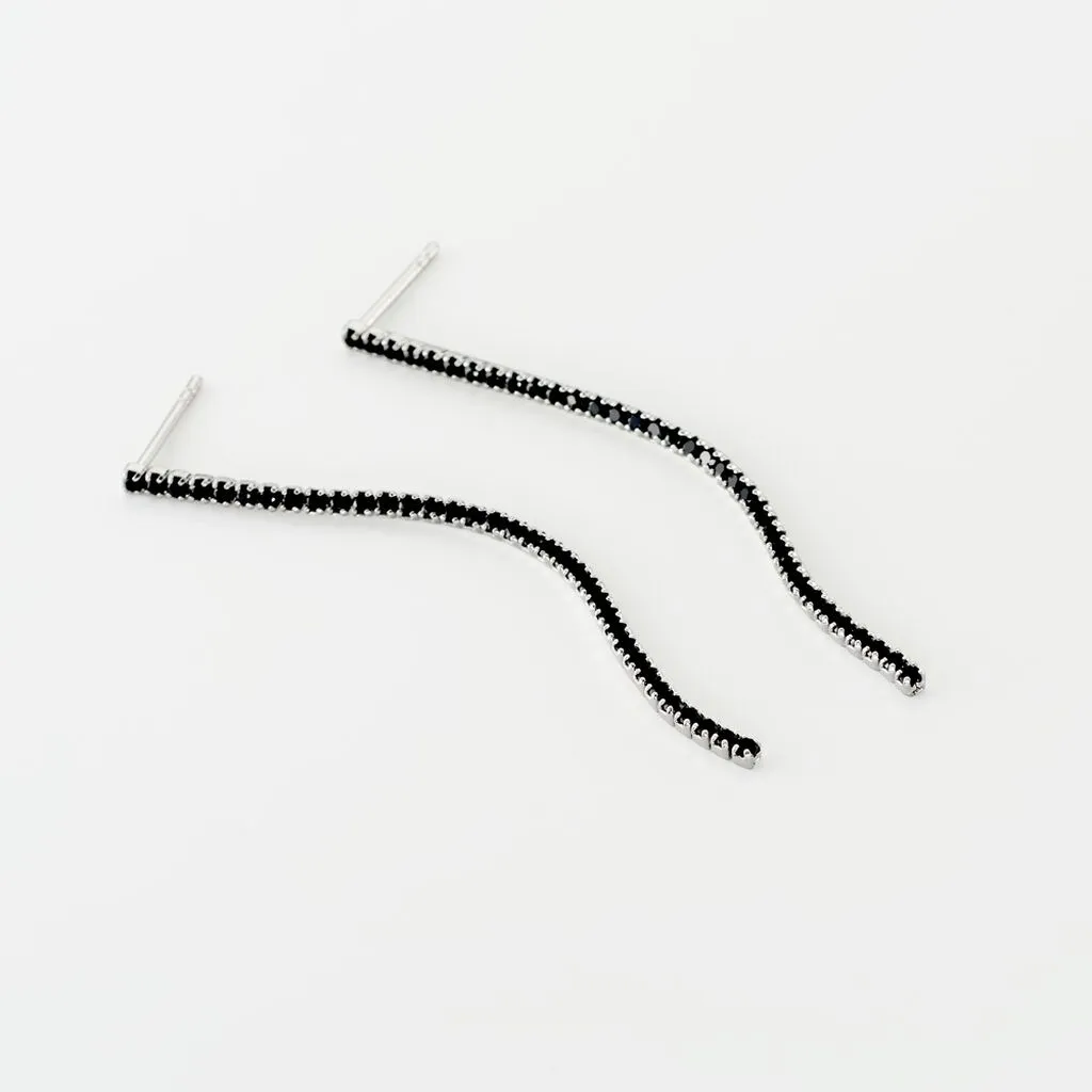 Boucles D’oreilles Pendantes Argent 925/1000 Rivière Oxydes De Zirconium Noirs Serti 4 Griffes Maille Tennis 6cm