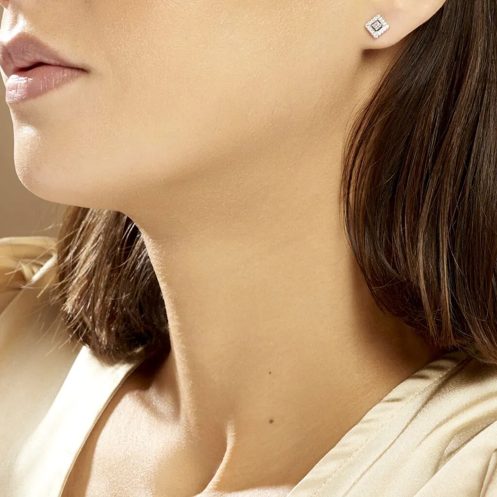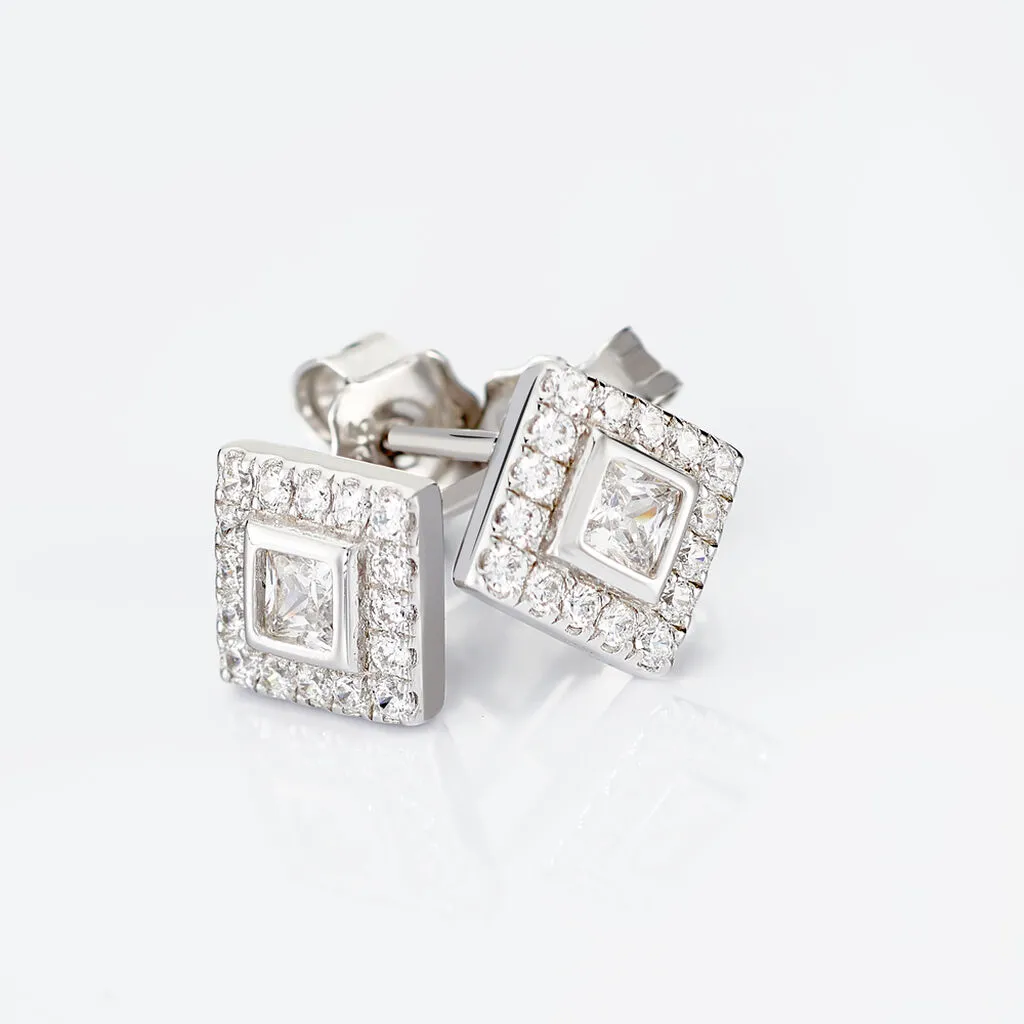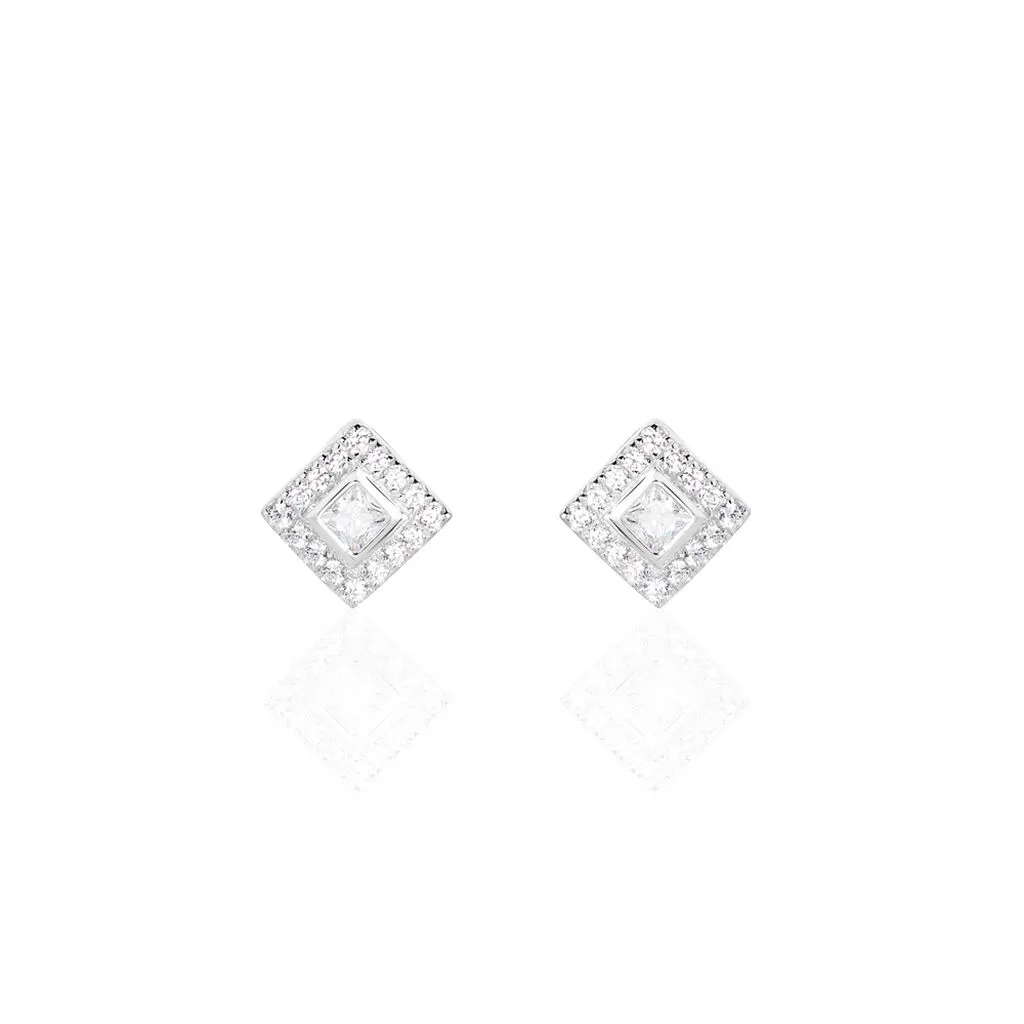 Boucles D’oreilles Puces Argent Blanc 925/1000 Carrees Oxydes De Zirconium
