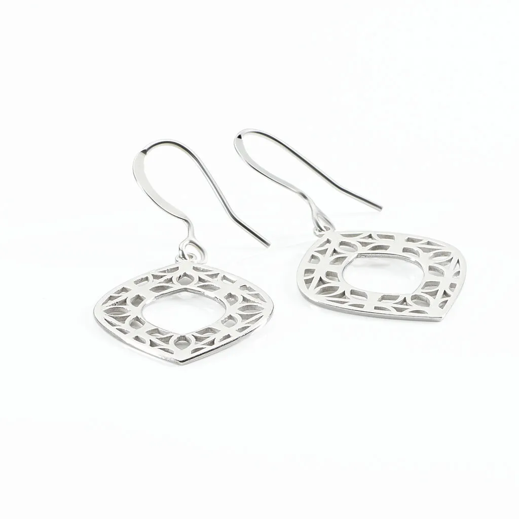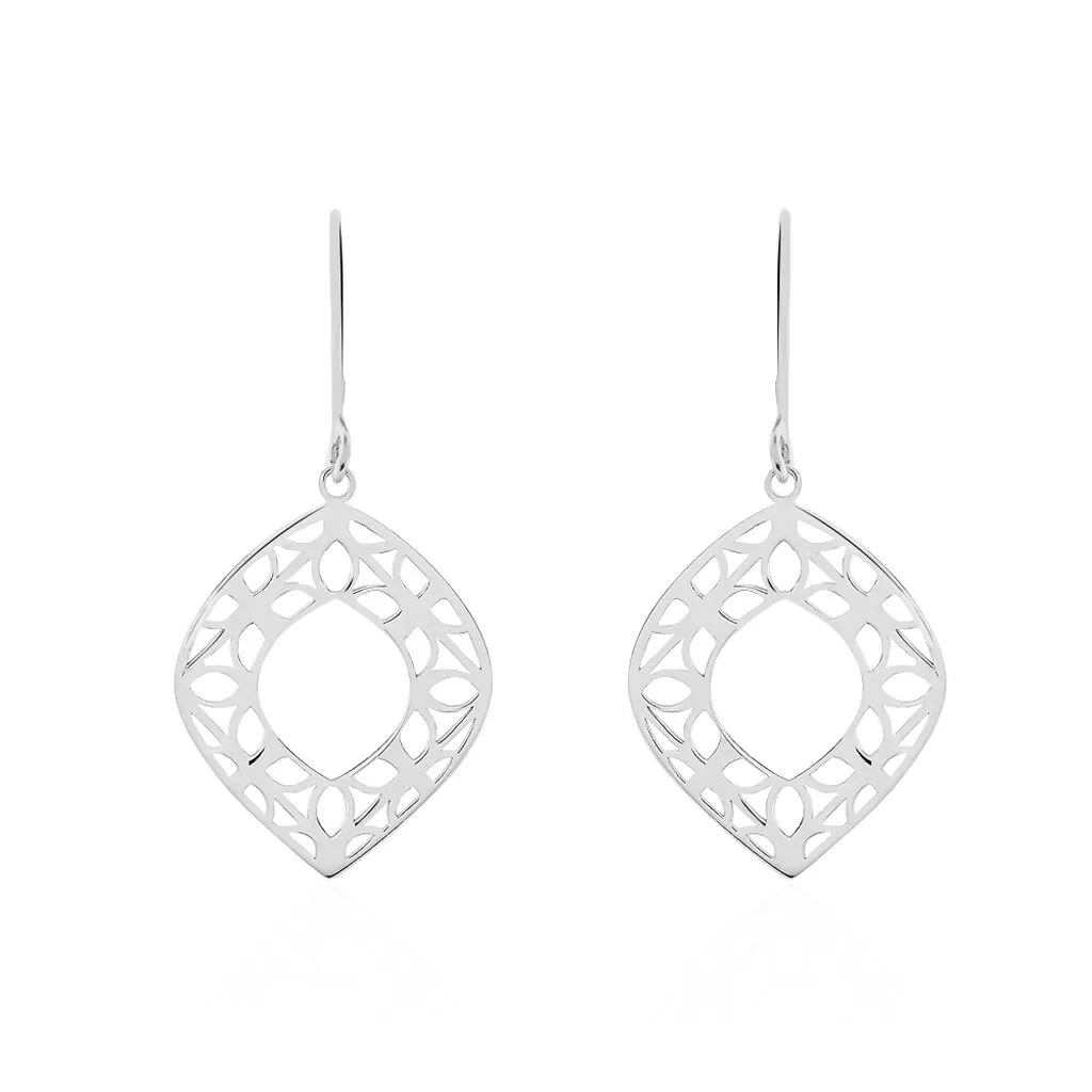 Boucles D’oreilles Pendantes Argent Blanc 925/1000 Losanges Motifs Ajoures