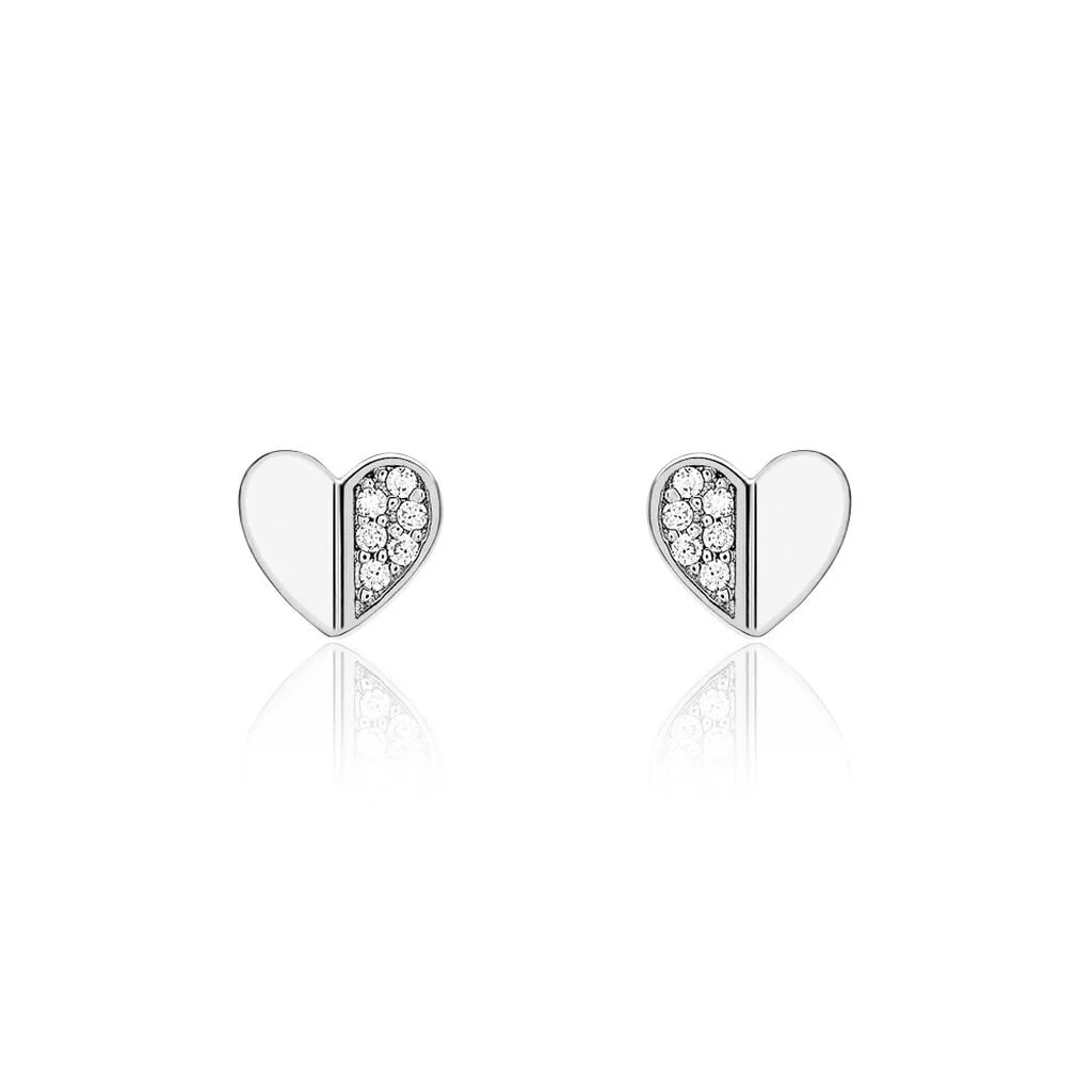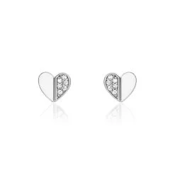 Boucles D’oreilles Argent Blanc 925/1000 Coeurs Oxydes De Zirconium