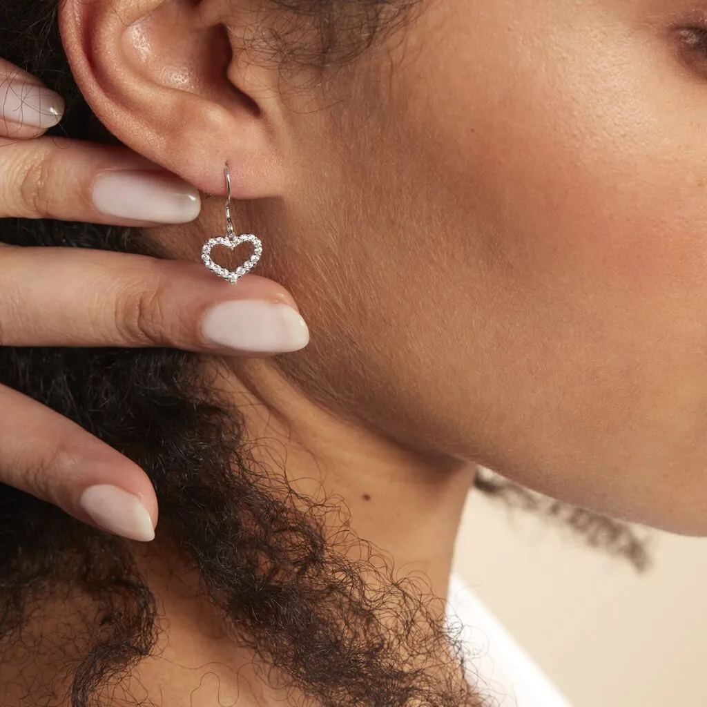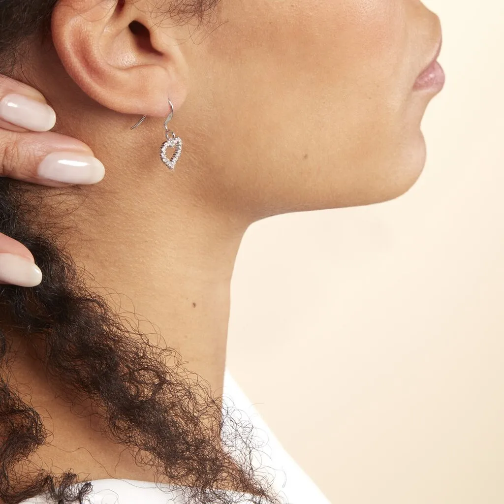 Boucles D’oreilles Argent Blanc 925/1000 Coeurs Creux Oxydes De Zirconium