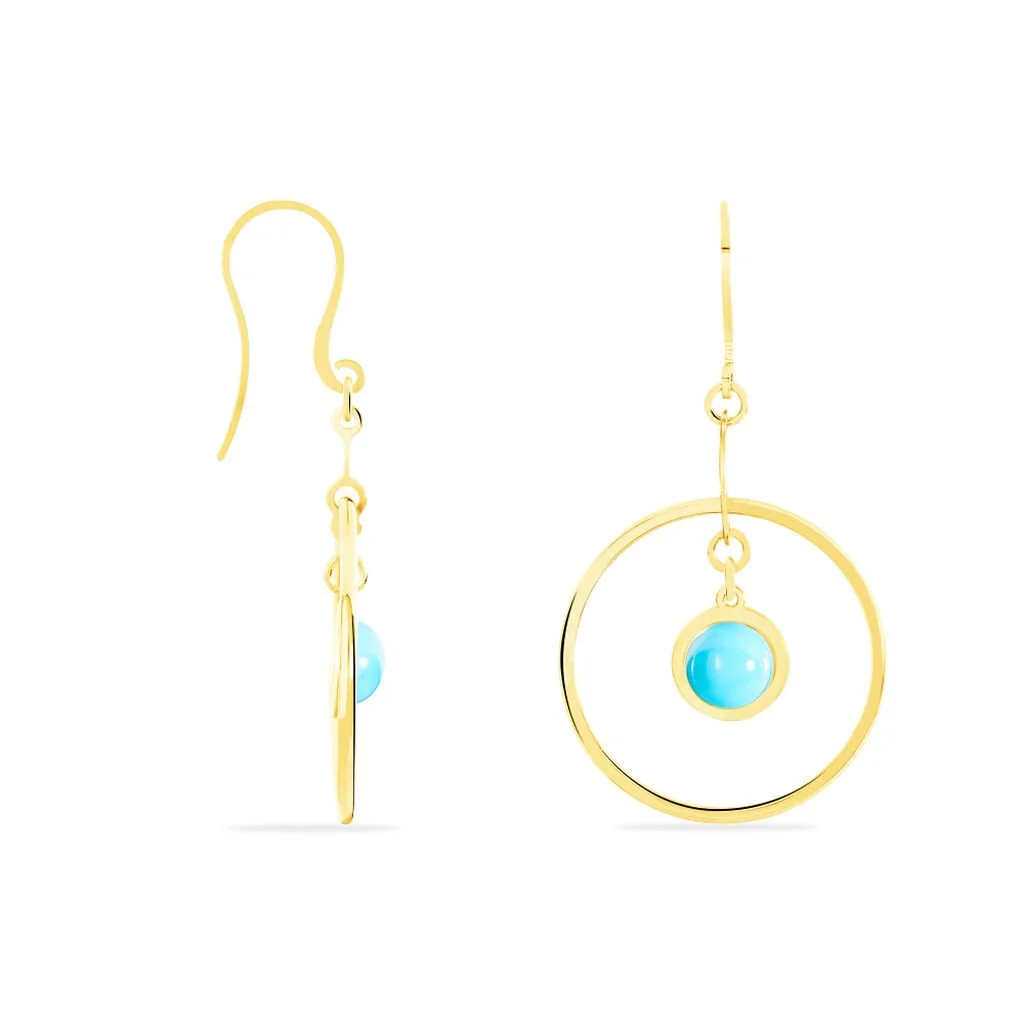 Boucles D’oreilles Or Jaune 375/1000 Cercles Et Pastilles + Résine Turquoise