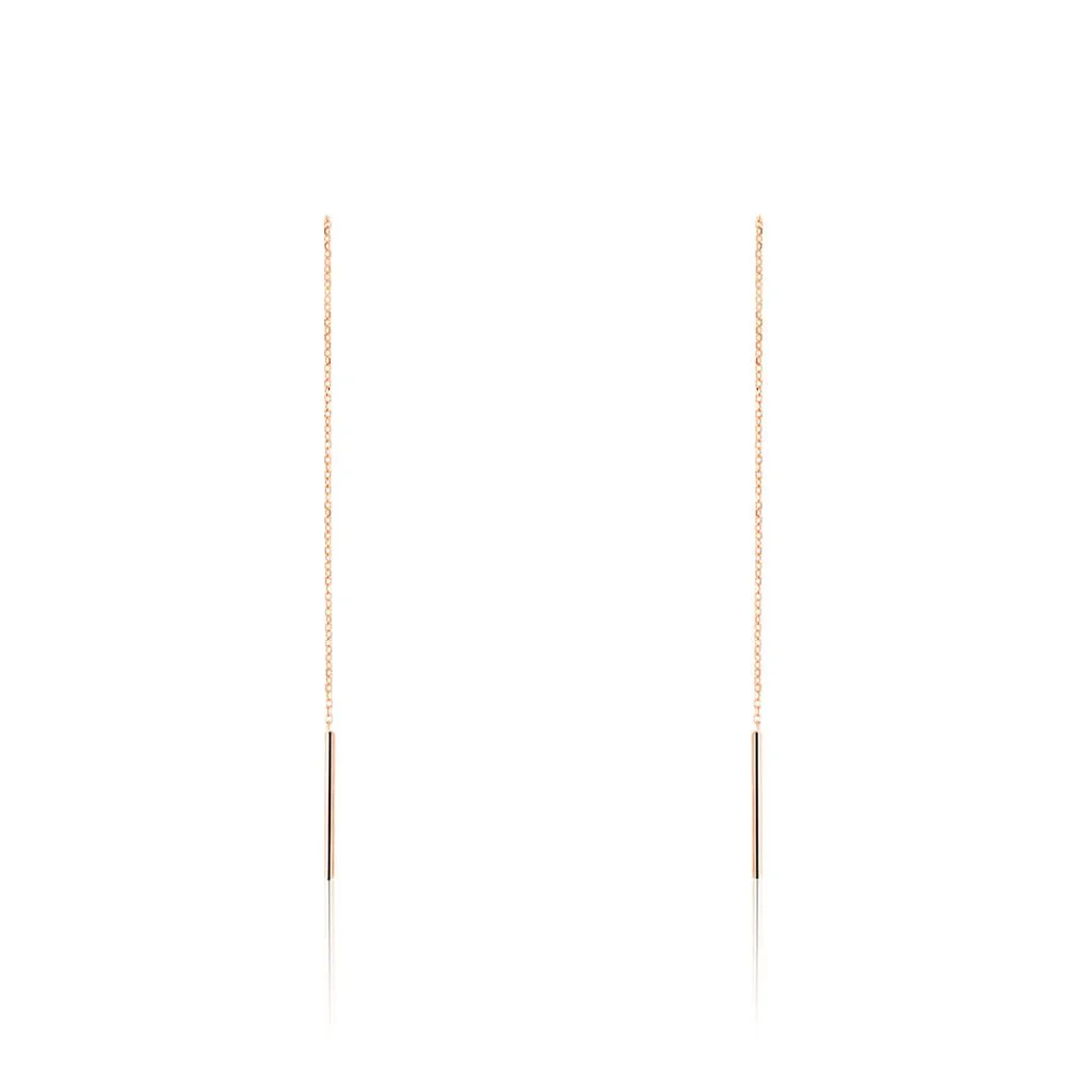 Vous allez apprécier l’élégance de ces boucles d’oreilles pendantes. Elles se distinguent par leur petite chaîne en or rose s’achevant par des barrettes. Simple, mais tout aussi stylée, cette paire s’accorde harmonieusement avec tous les looks que vous préfériez une allure classique, chic ou casual.