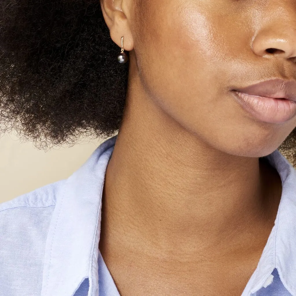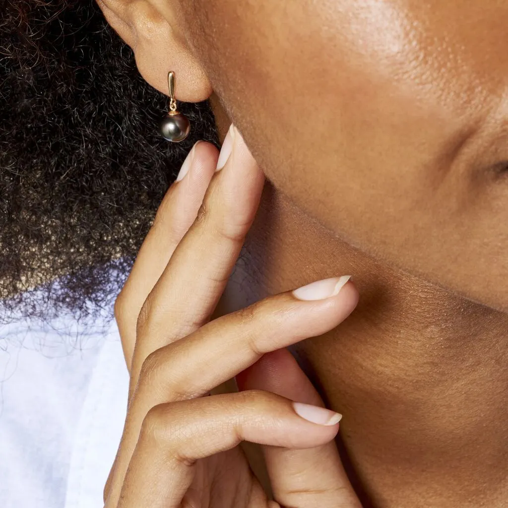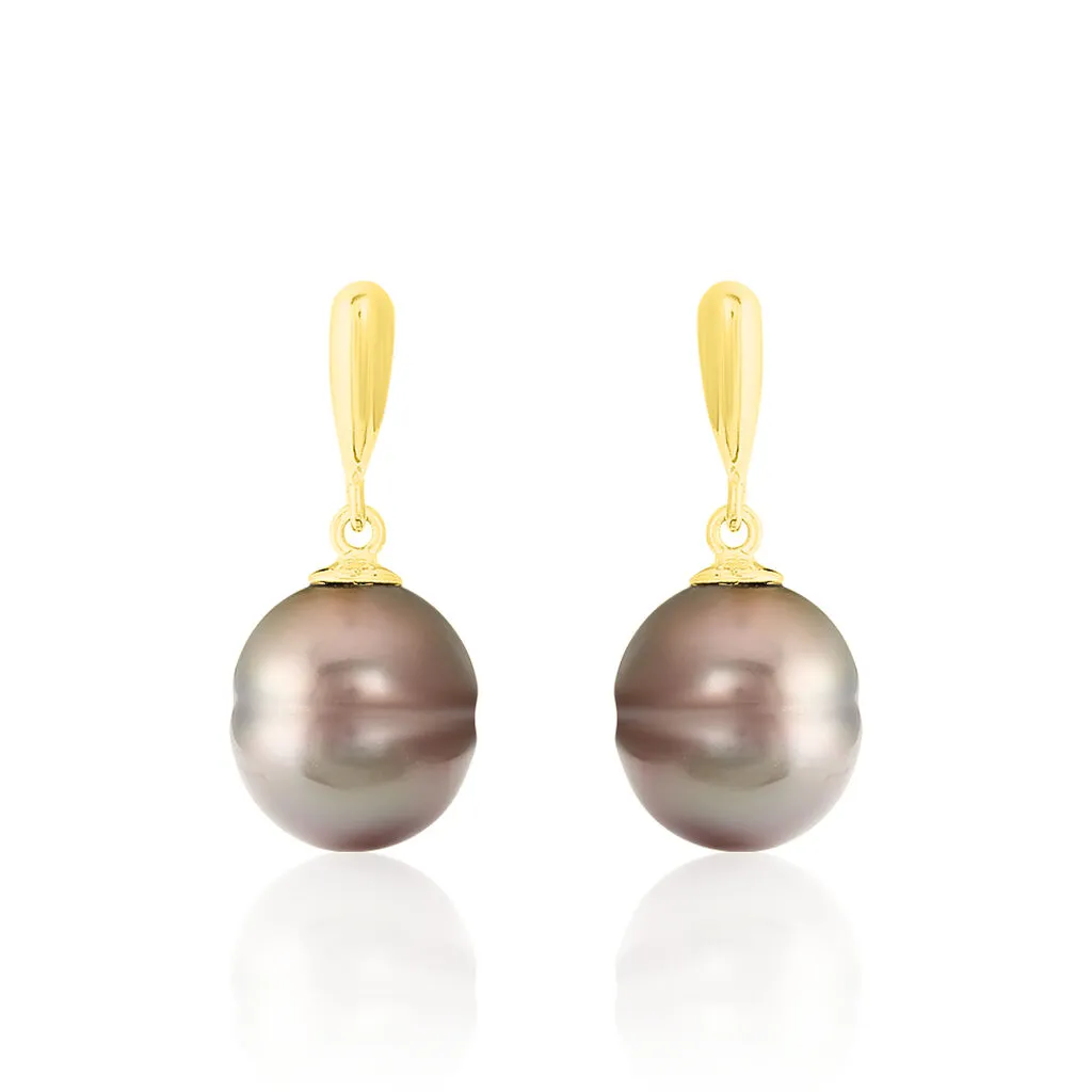 Boucles D’oreilles Pendantes Semi-baroque Or Jaune Perle De Tahiti