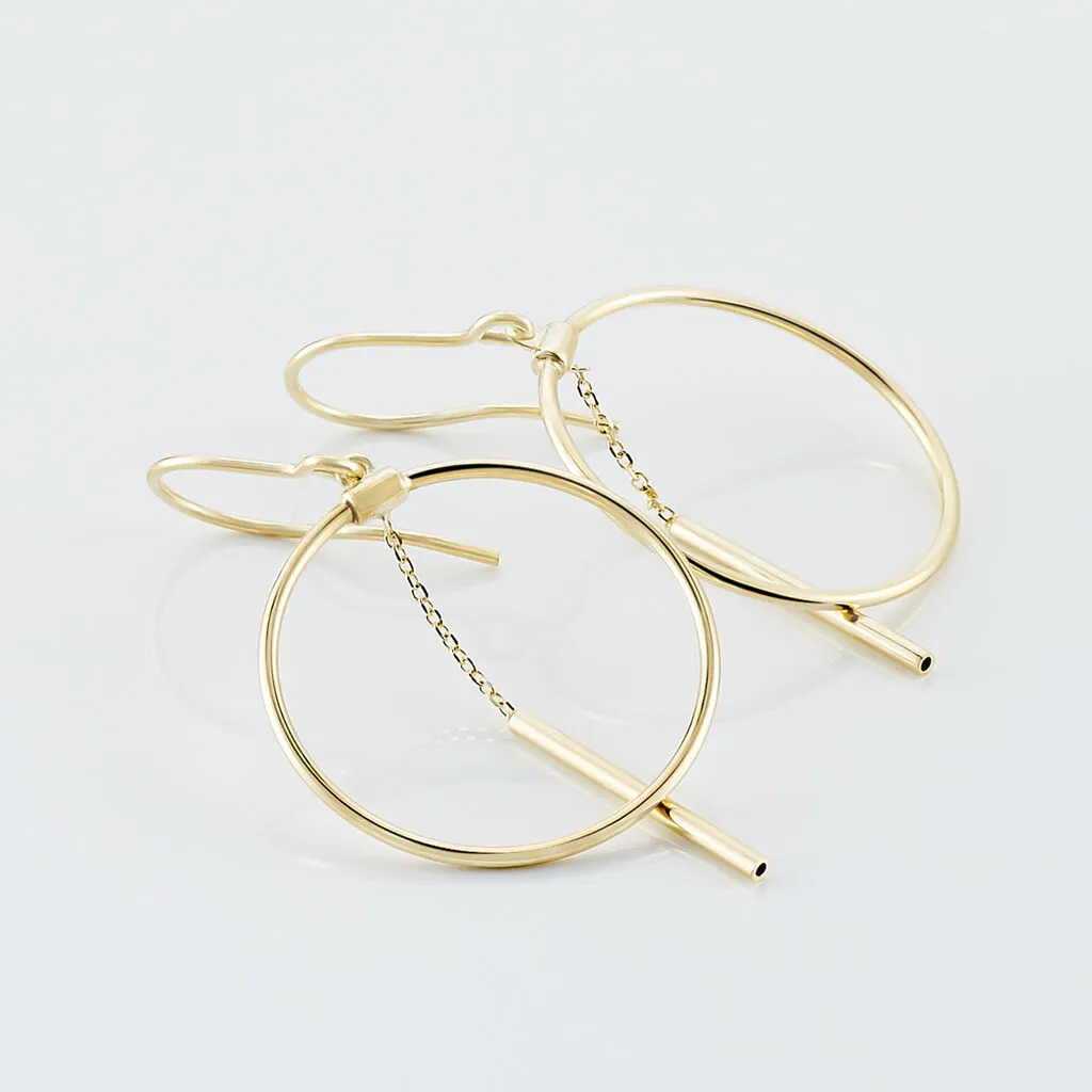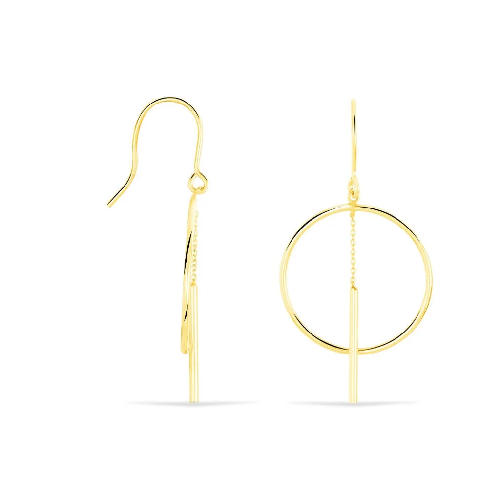 Boucles D’oreilles Or Jaune 375/1000 Motifs Cercles Ajoures + Petites Barres Pendantes