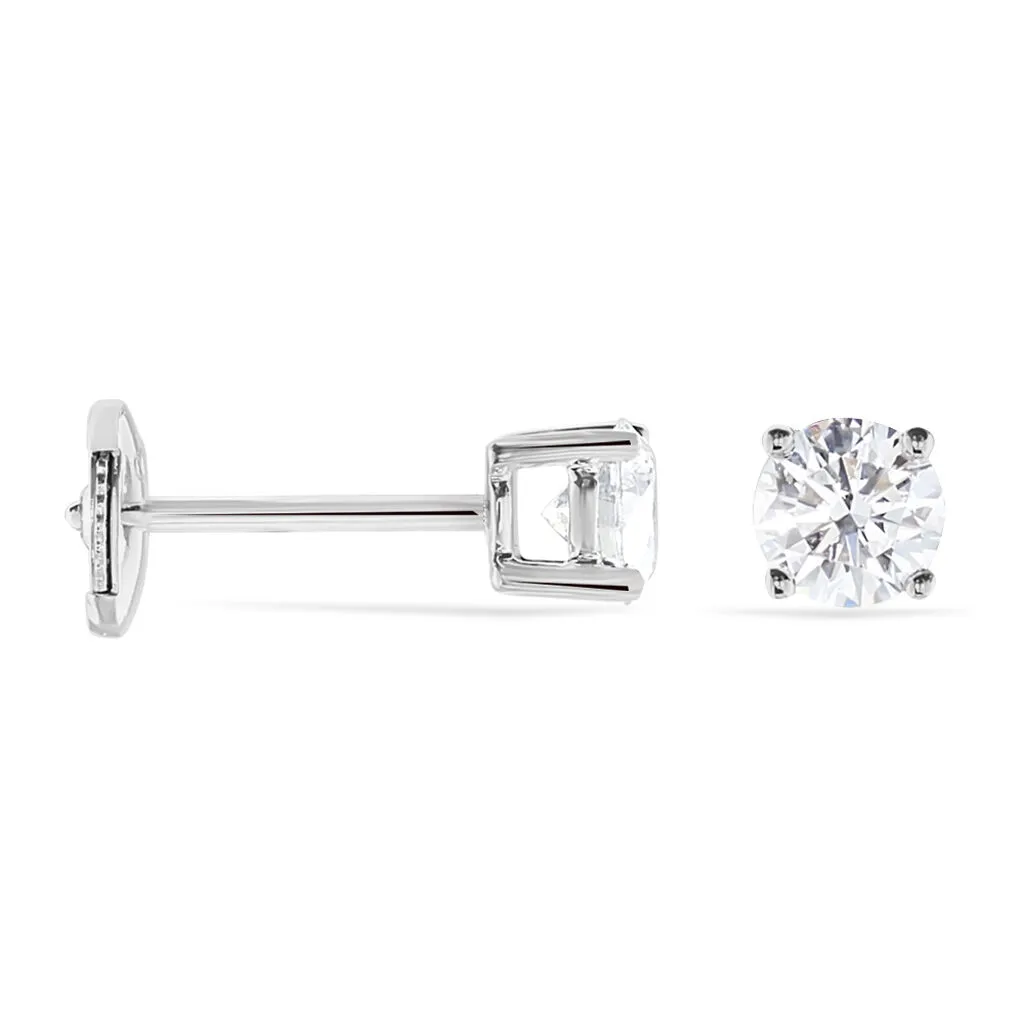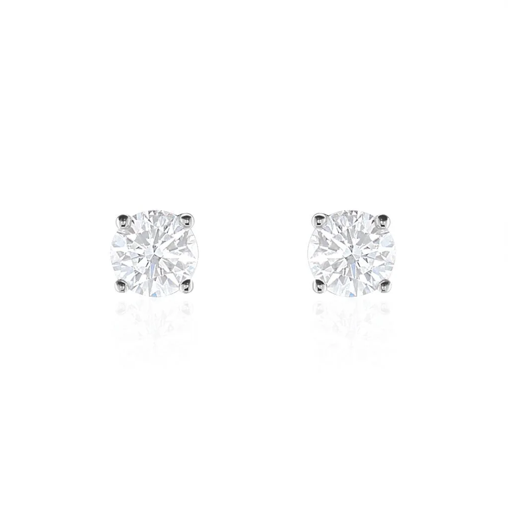Boucles D’oreilles Puces Or Blanc 750/1000 Diamants Synthétiques 0.80ct Serti 4 Griffes Systèmes Alpas