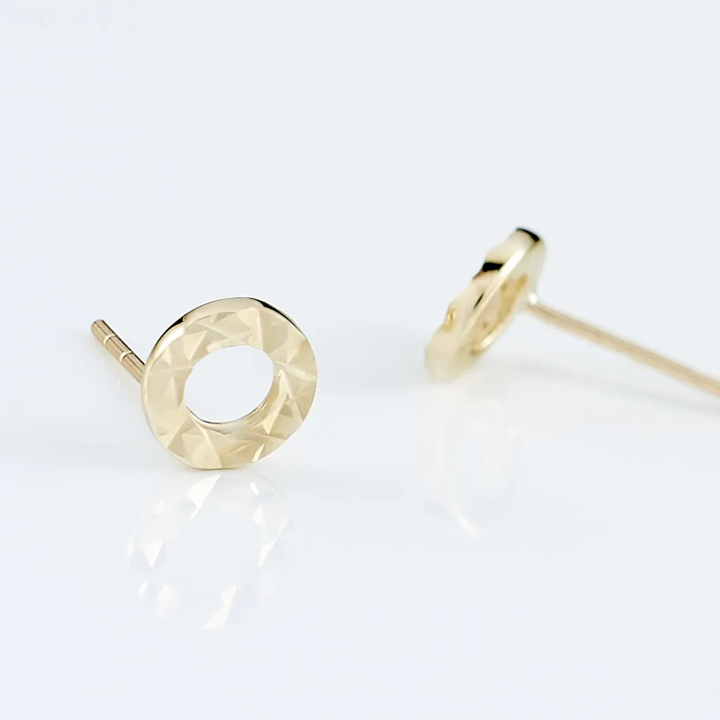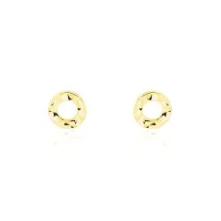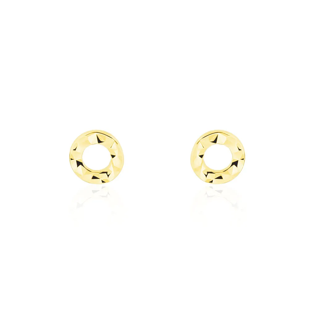 Boucles D’oreilles Or Jaune 375/1000 Puce Cercle Effet Diamante