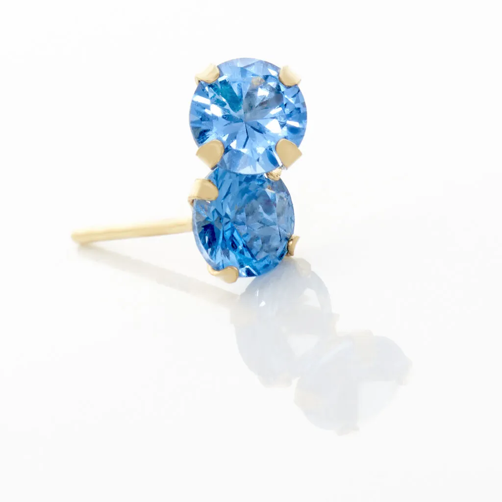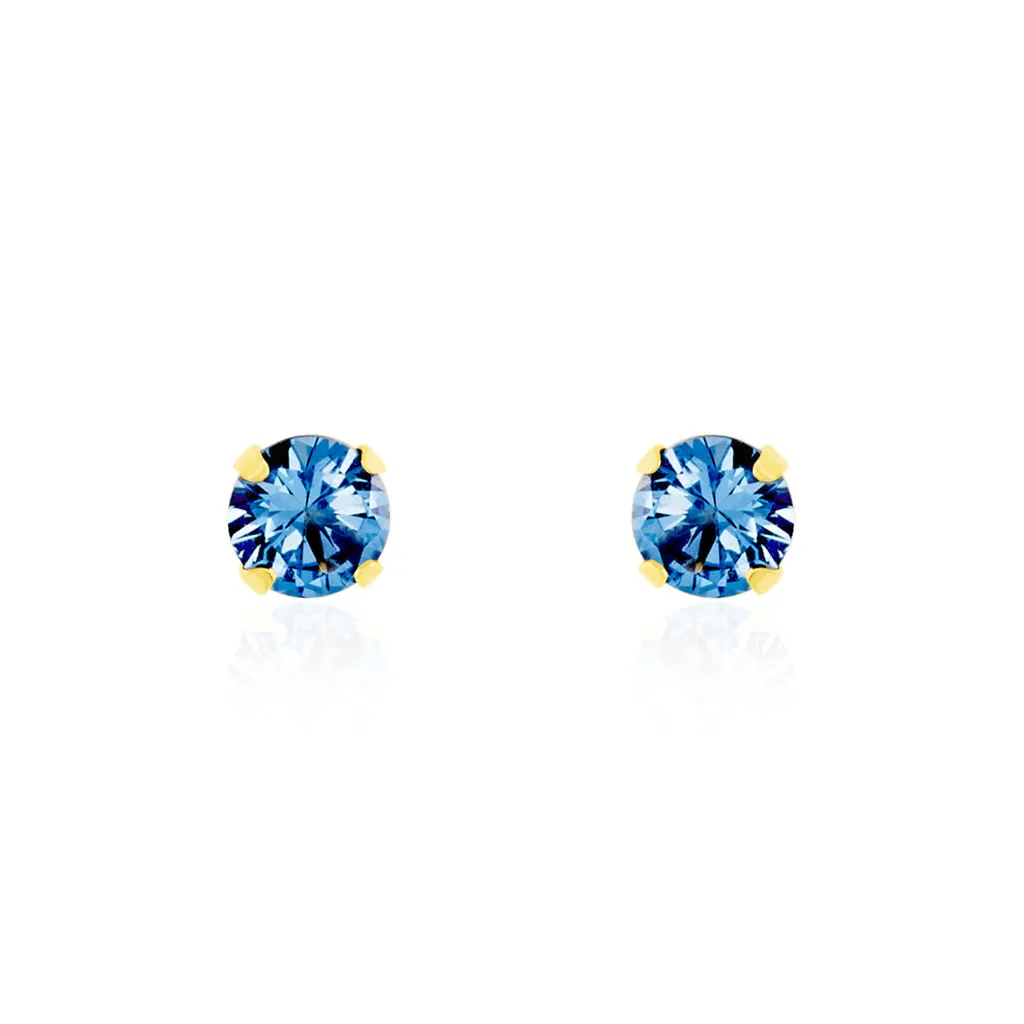 Boucles D’oreilles Puce Or Jaune 375/1000 Oxyde De Zirconium Bleu 4mm