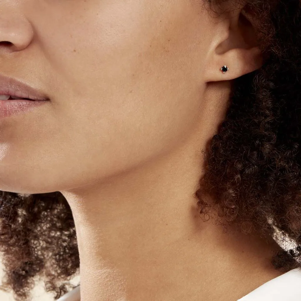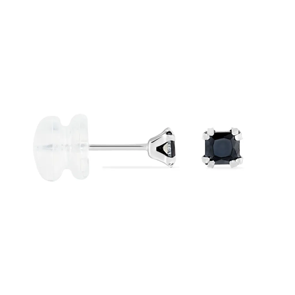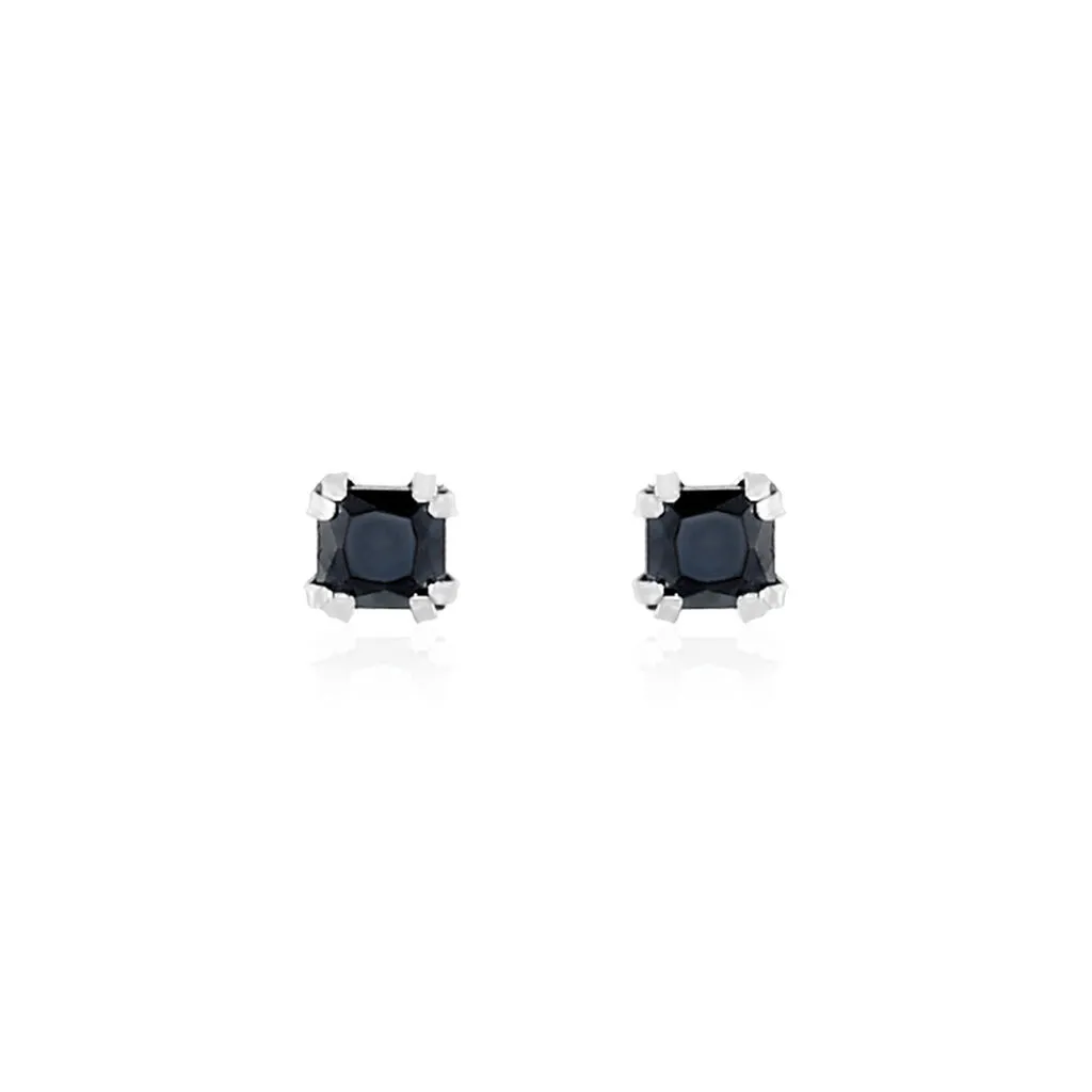 Boucles D’oreilles Or Blanc 375/1000 Puce Oxydes De Zirconium Carres Noirs 3mm