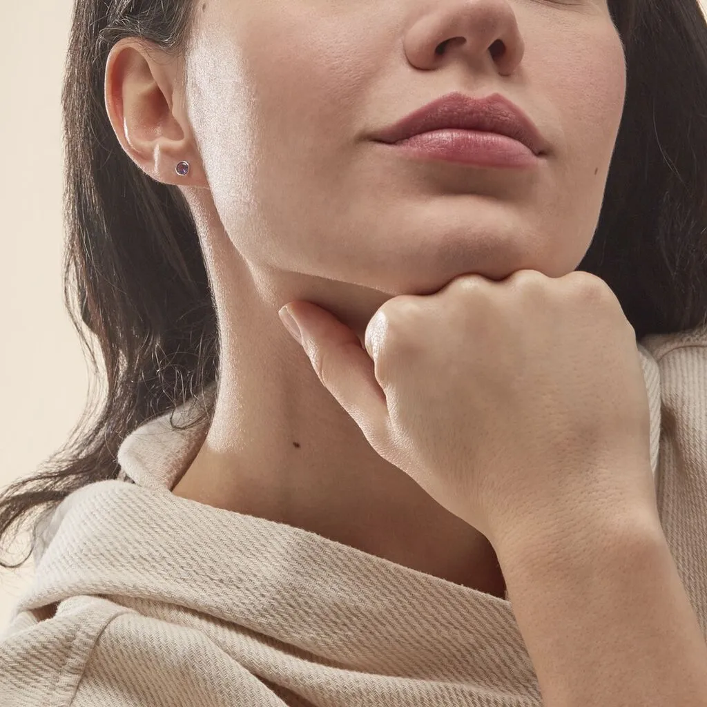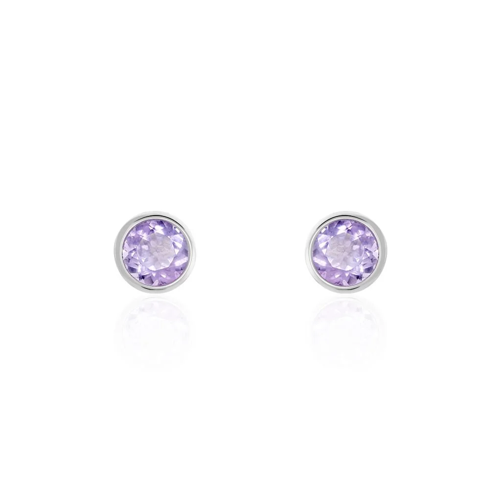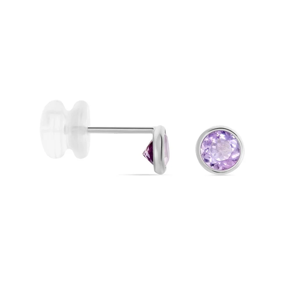 Boucles D’oreilles Puces Edy Serti Clos Or Blanc Amethyste