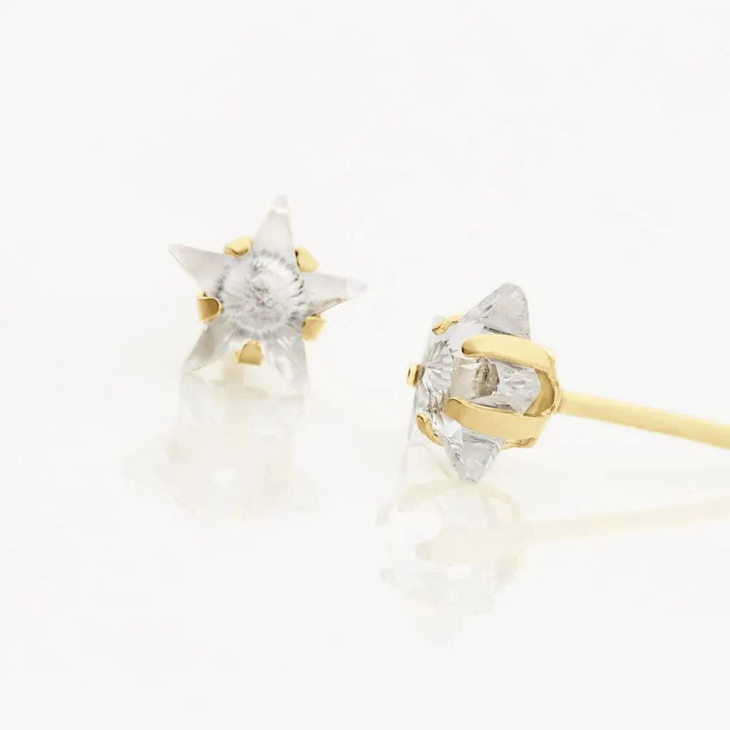 Boucles D’oreilles Or Jaune 375/1000 Puces Forme Etoile Oxydes De Zirconium 5mm