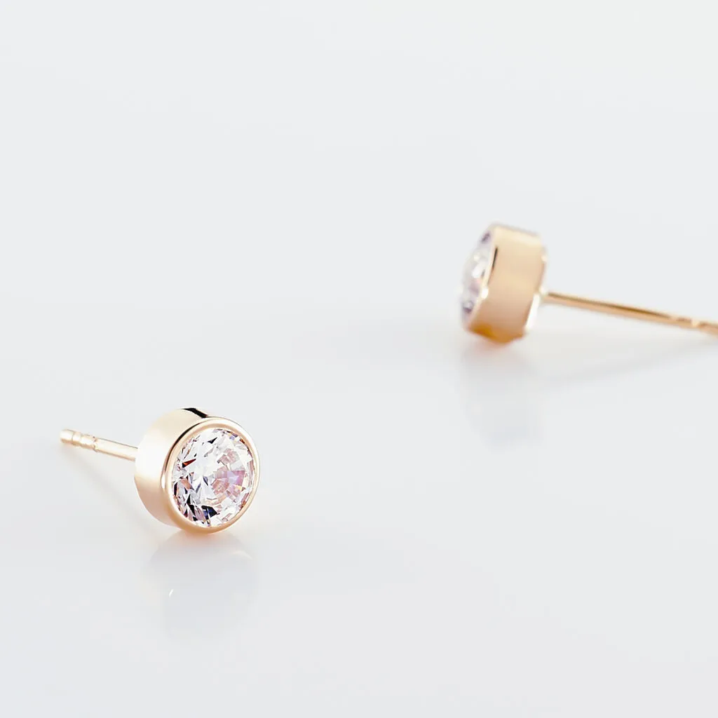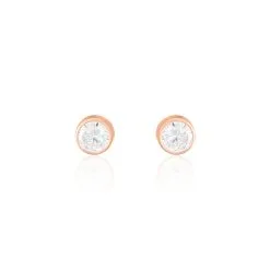 Boucles D’oreilles Puces Elda Serti Clos Or Rose Oxyde De Zirconium