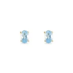 Boucles D’oreilles Or Jaune 375/1000 Topazes Bleues Ovales 6x4mm