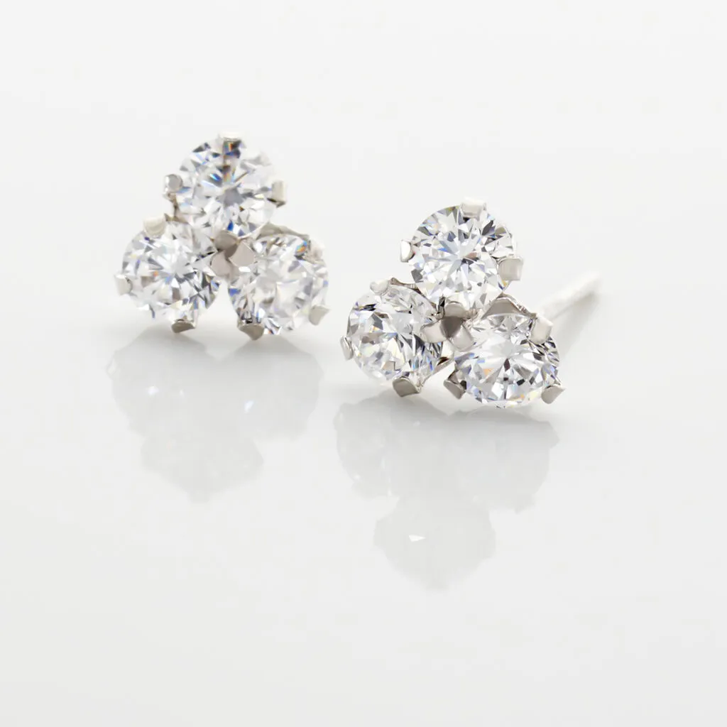 Boucles D’oreilles Or Blanc 375/1000 3 Oxydes De Zirconium 2.5mm