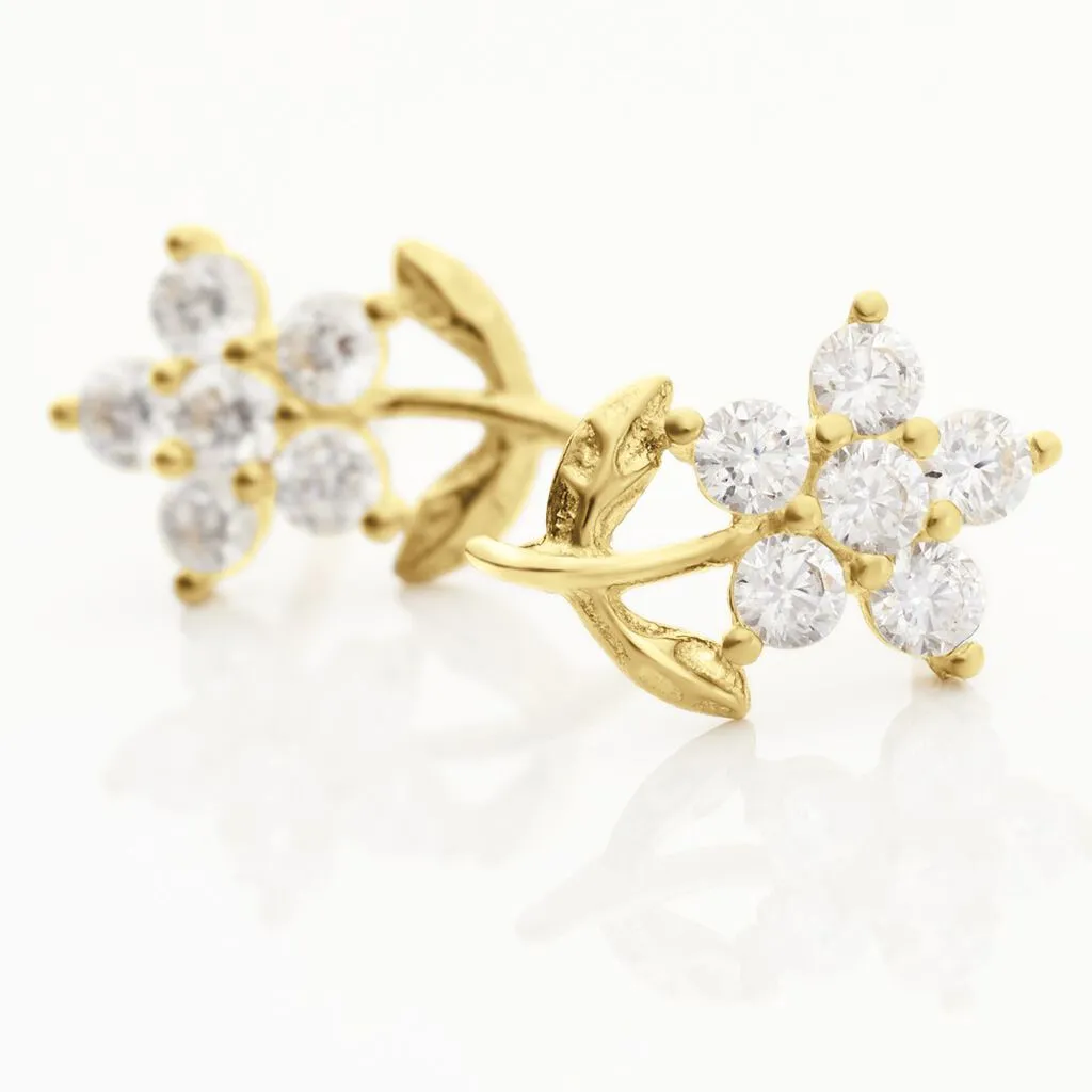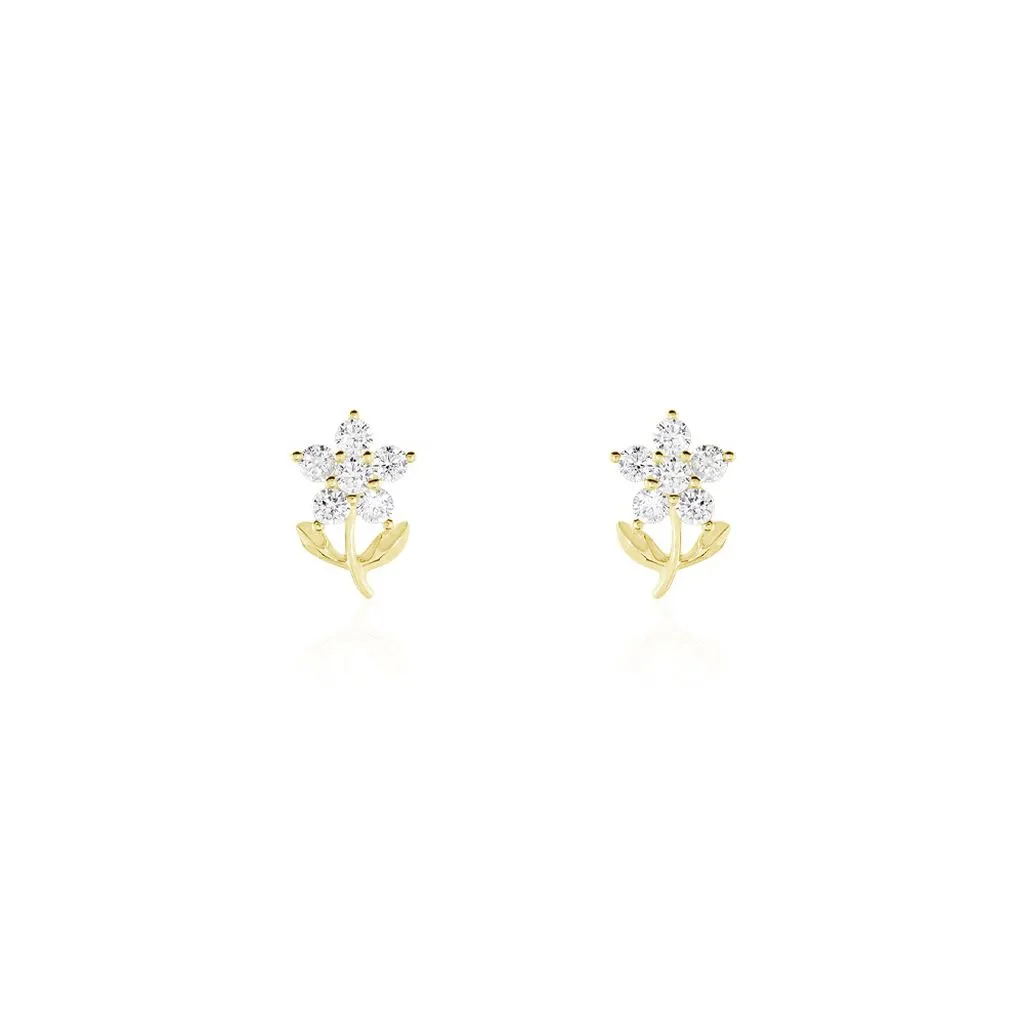 Boucles D’oreilles Puces Eleanor Fleur Or Jaune Oxyde De Zirconium