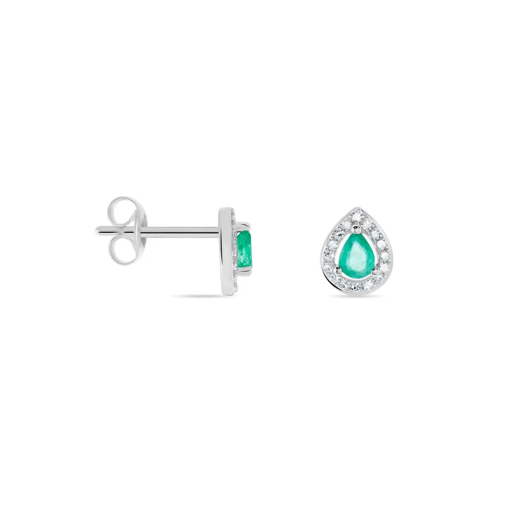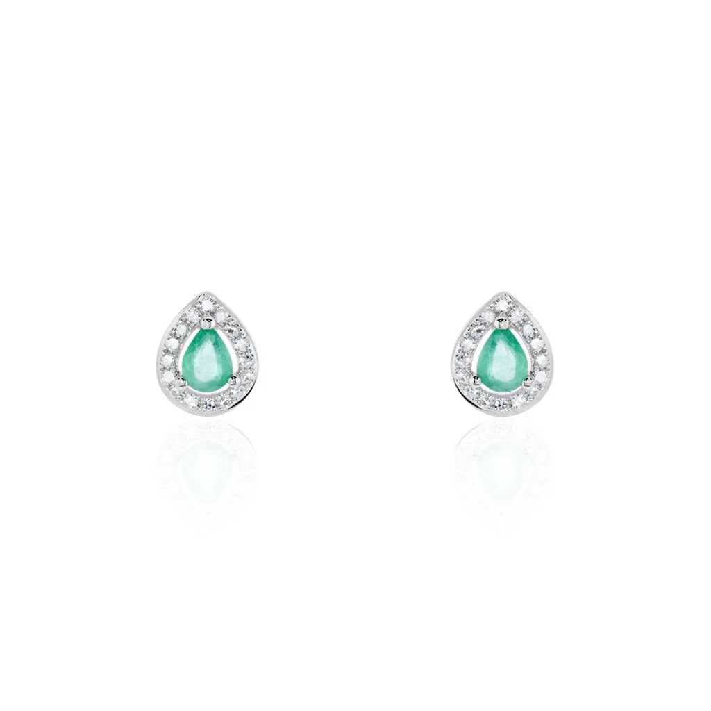 Boucles D’oreilles Puces Elheme Or Blanc Emeraude Et Diamant