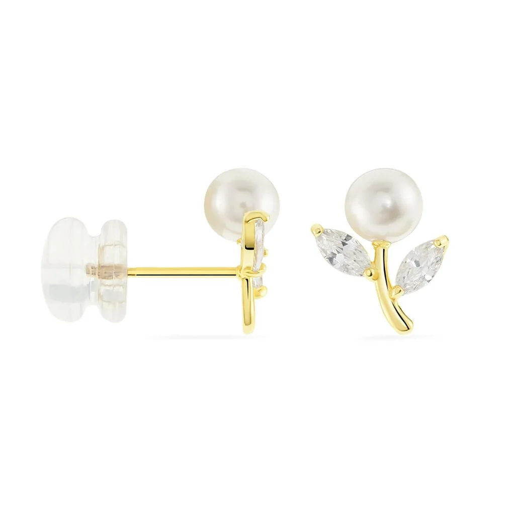 Boucles D’oreilles Puces Frigga Or Jaune Perle De Culture Et Oxyde