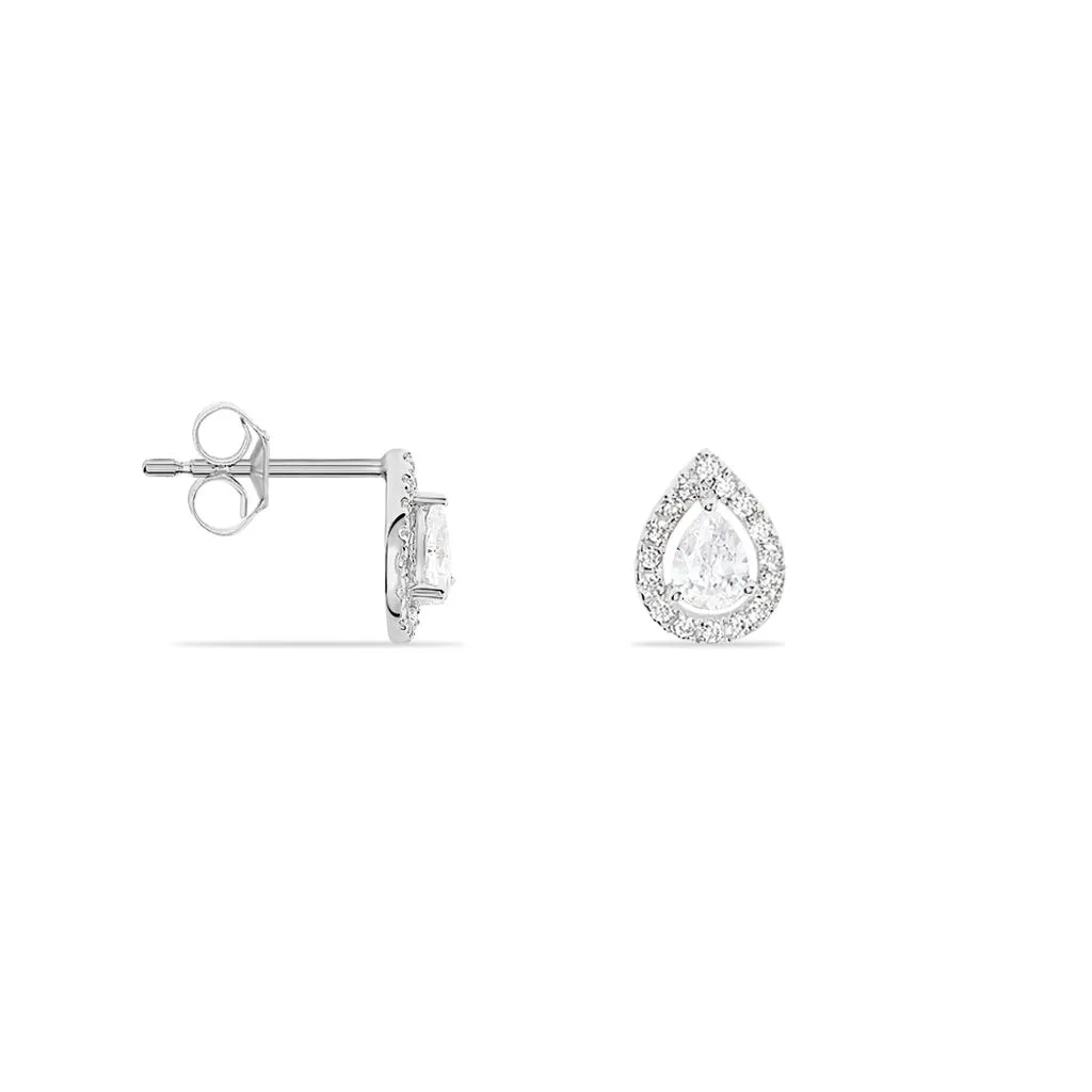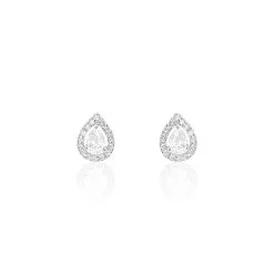 Boucles D’oreilles Or Blanc 375/1000 Puces Oxydes De Zirconium Centraux Formes Poires Entourage Oxydes De Zirconium