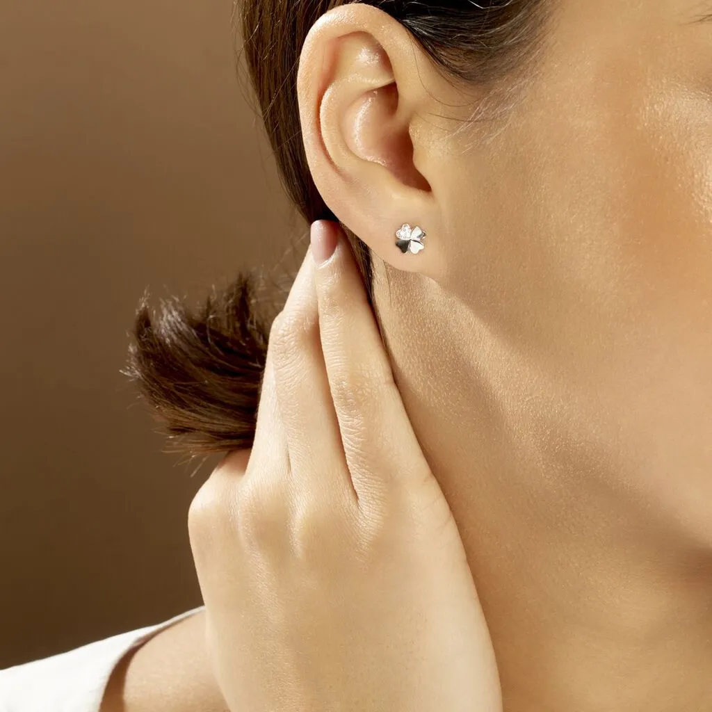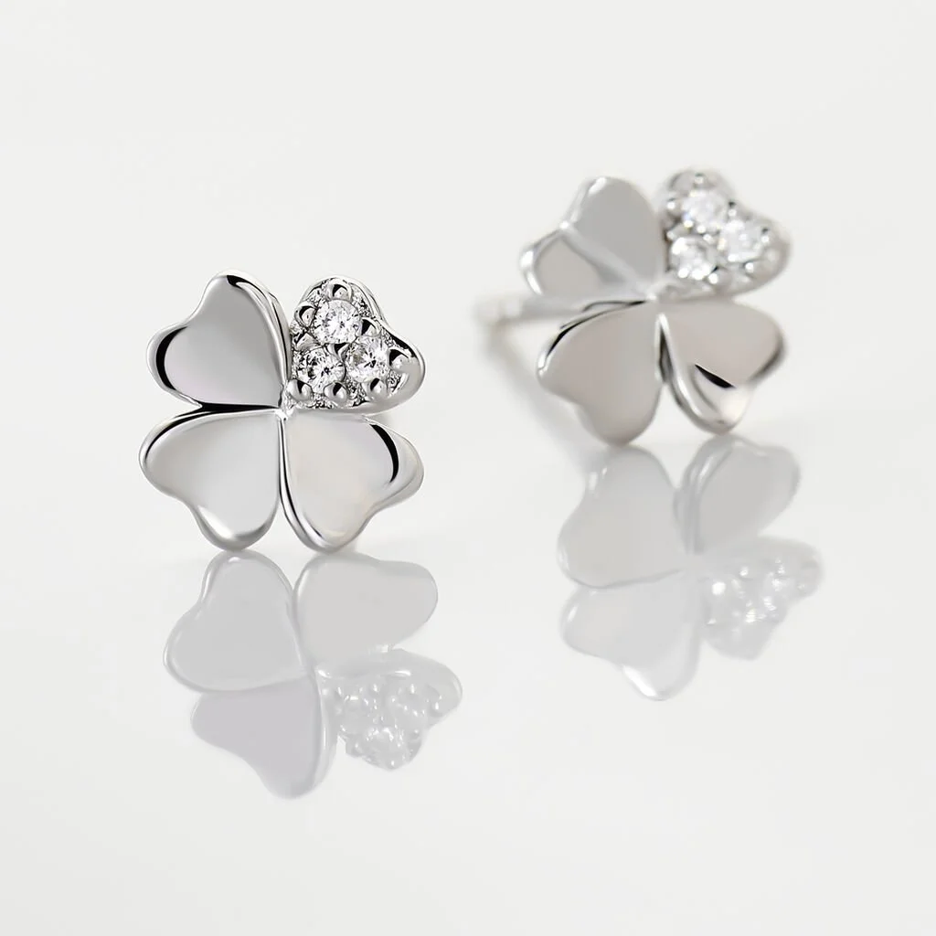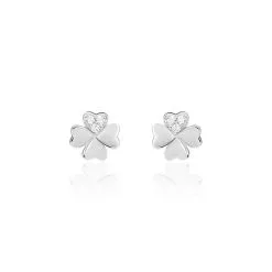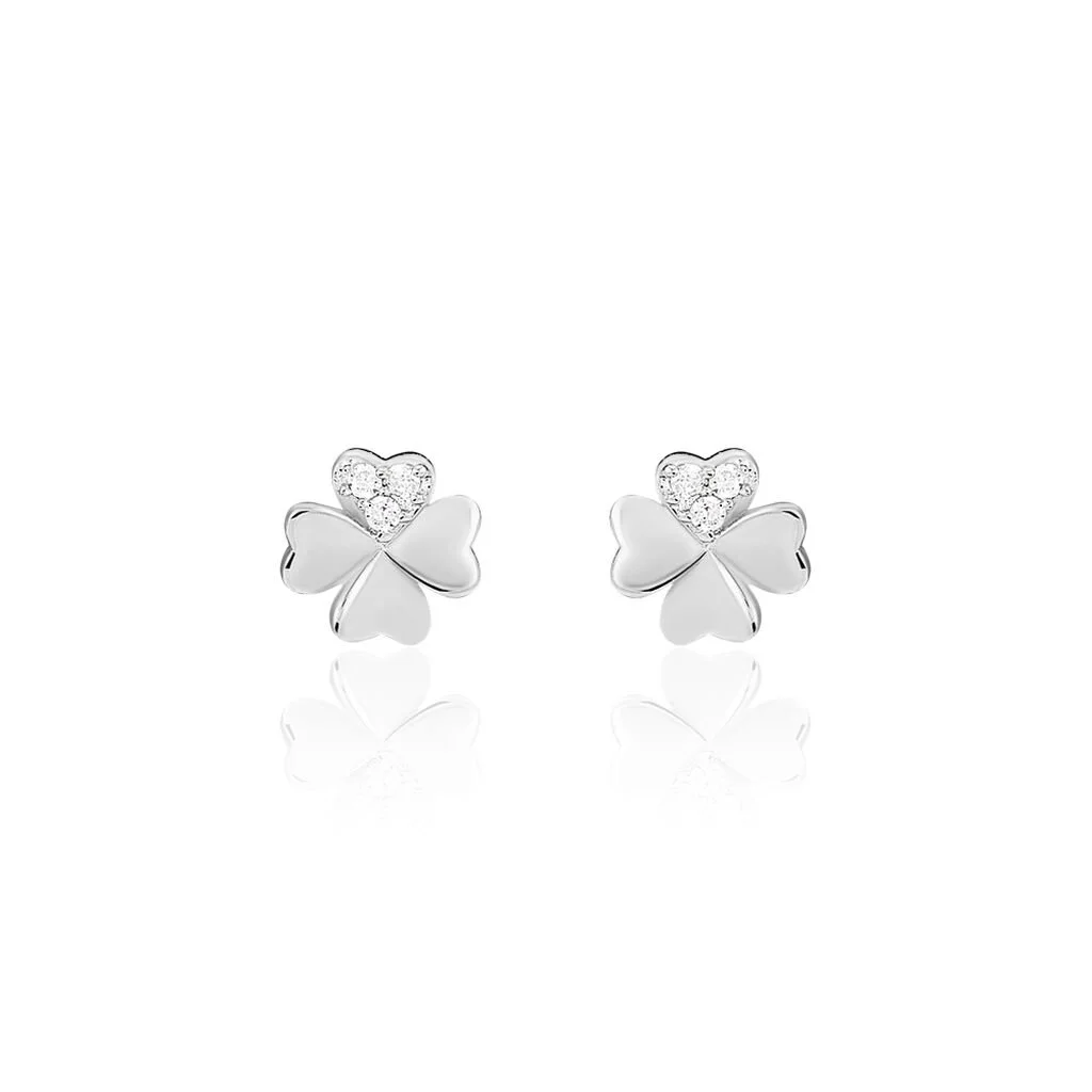 Boucles D’oreilles Puces Argent Blanc 925/1000 Motifs Trefles Pavage Oxydes De Zirconium