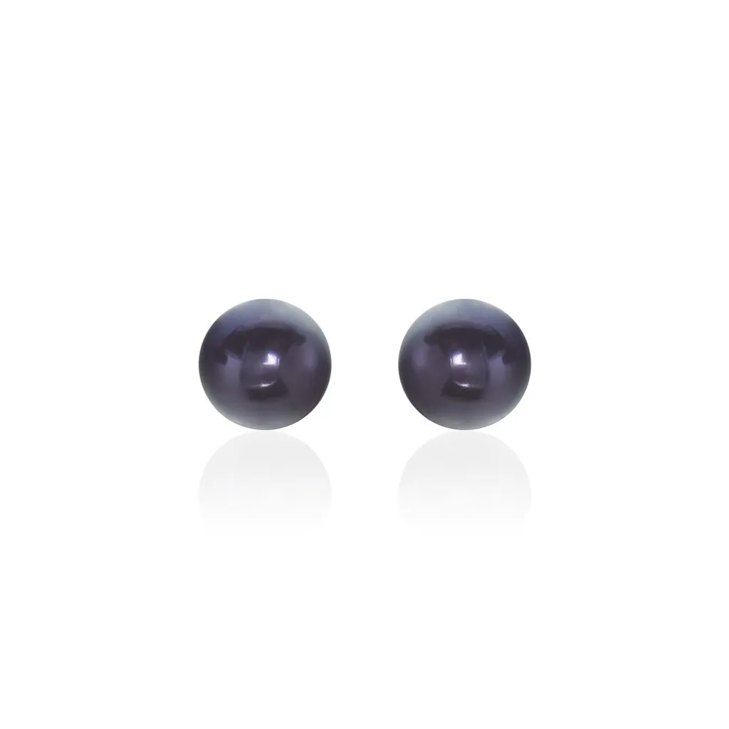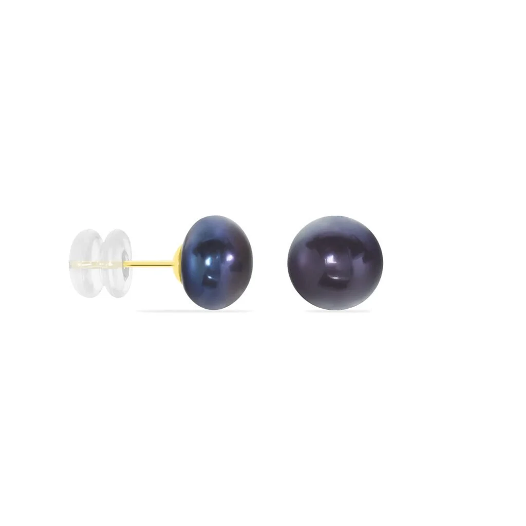 Boucles D’oreilles Or Jaune 375/1000 Perles De Culture Bouton Teintées Noires 8/8.5mm