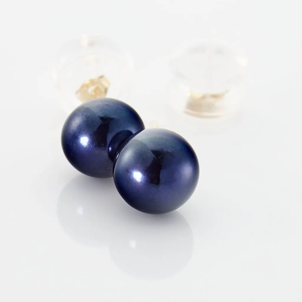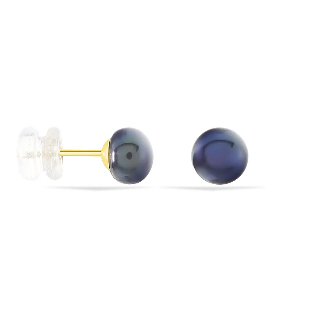 Boucles D’oreilles Or Jaune 375/1000 Perles De Culture Bouton Teintées Noires 6/6.5mm